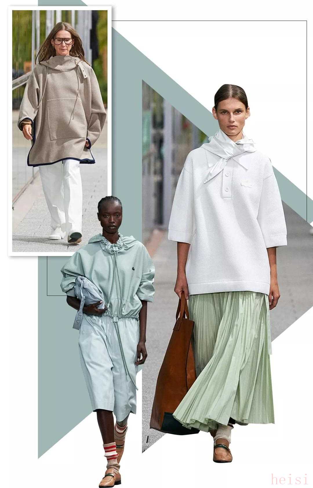 Off-White的衛(wèi)衣也主打oversize版型。除了經(jīng)典的箭頭衛(wèi)衣,其他還有很多的圖樣可以選擇。在2020春夏的秀場上,Lacoste的oversize衛(wèi)衣也得到了很多好評。它們有的像斗篷,有的通過上下抽繩形成了版型上的變化,還有的做成了加大版的Polo衫式衛(wèi)衣,非常特別。