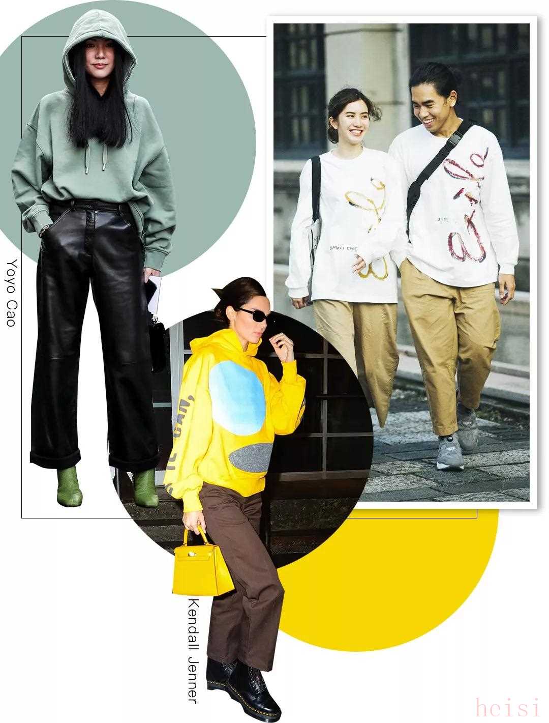 除了Hailey,還有很多年輕的穿衣偶像都愛穿衛(wèi)衣,并且用它搭配出了許多不同的單品和元素。