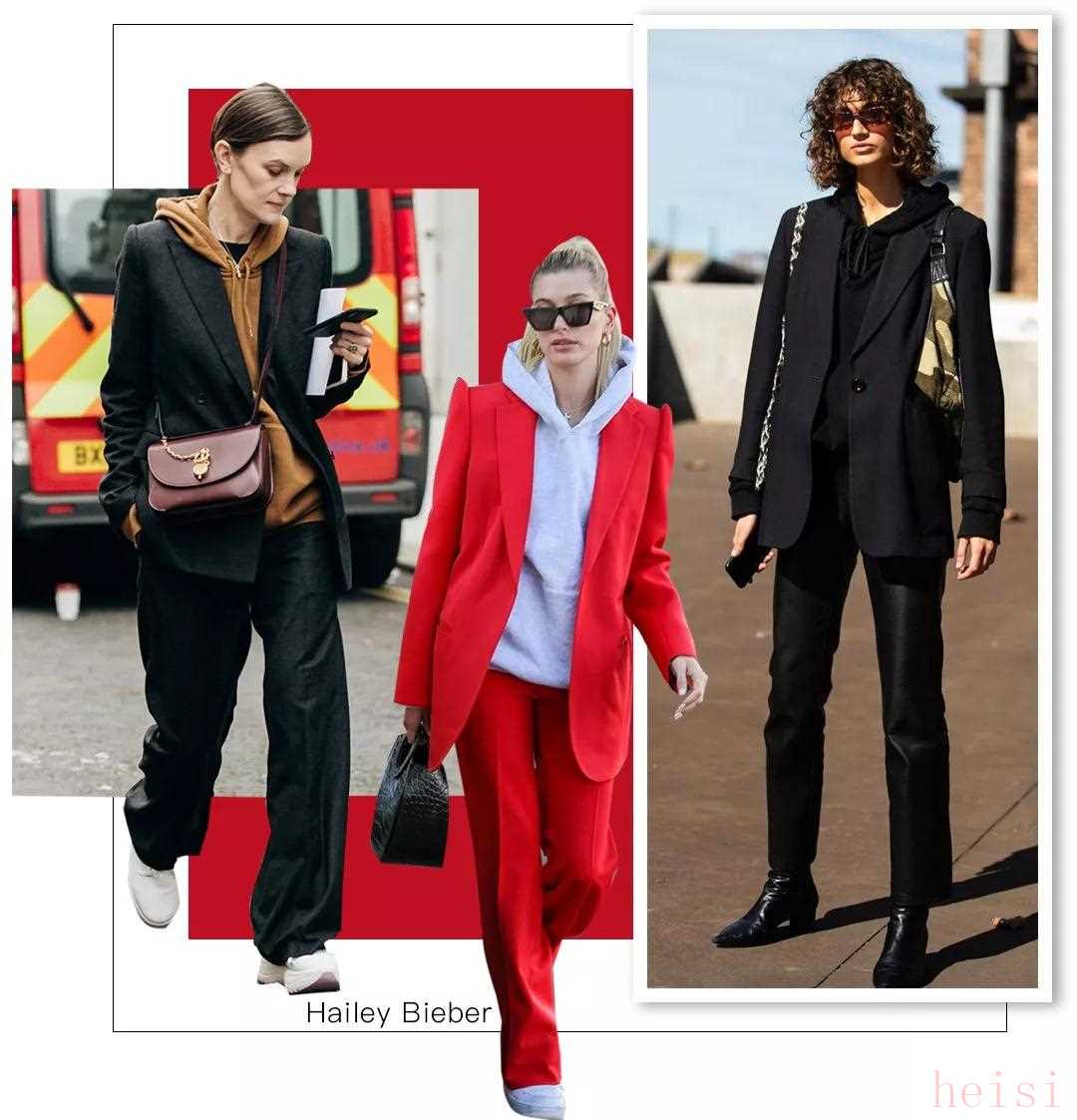 西服套裝是這兩季非常時髦的單品。用衛(wèi)衣來搭配西服套裝,可以讓西裝變得更年輕。