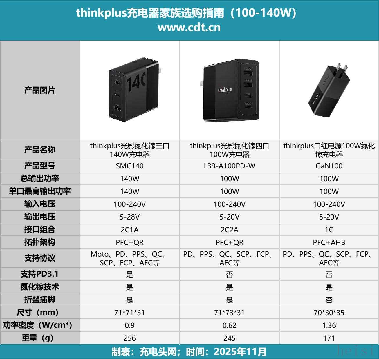 在 100–140W這一功率段,thinkplus有光影與口紅電源兩大系列,分別是兩款百瓦充電器和一款支持PD3.1 140W輸出的充電器。三者均都采用GaN技術(shù),內(nèi)容用料和做工扎實(shí),功率覆蓋從手機(jī)、平板到筆電等主流場(chǎng)景。