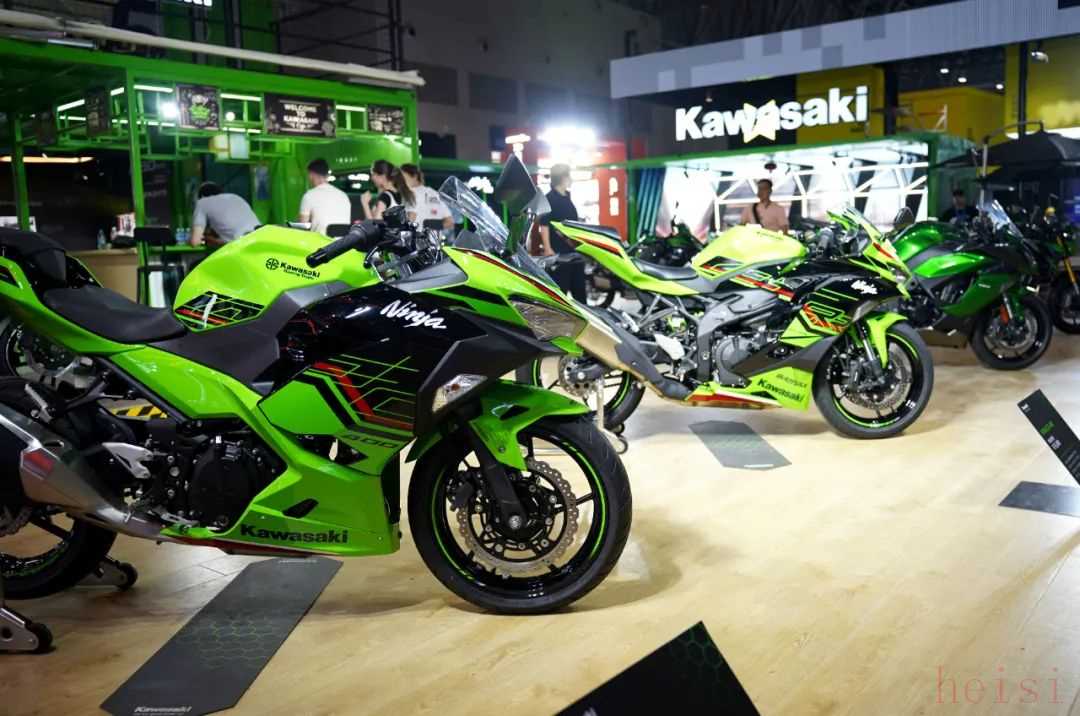 進(jìn)口知名品牌哈雷和川崎就更像是過來展位“報道”。不過他們的展位還是相當(dāng)?shù)挠刑厣?/span>