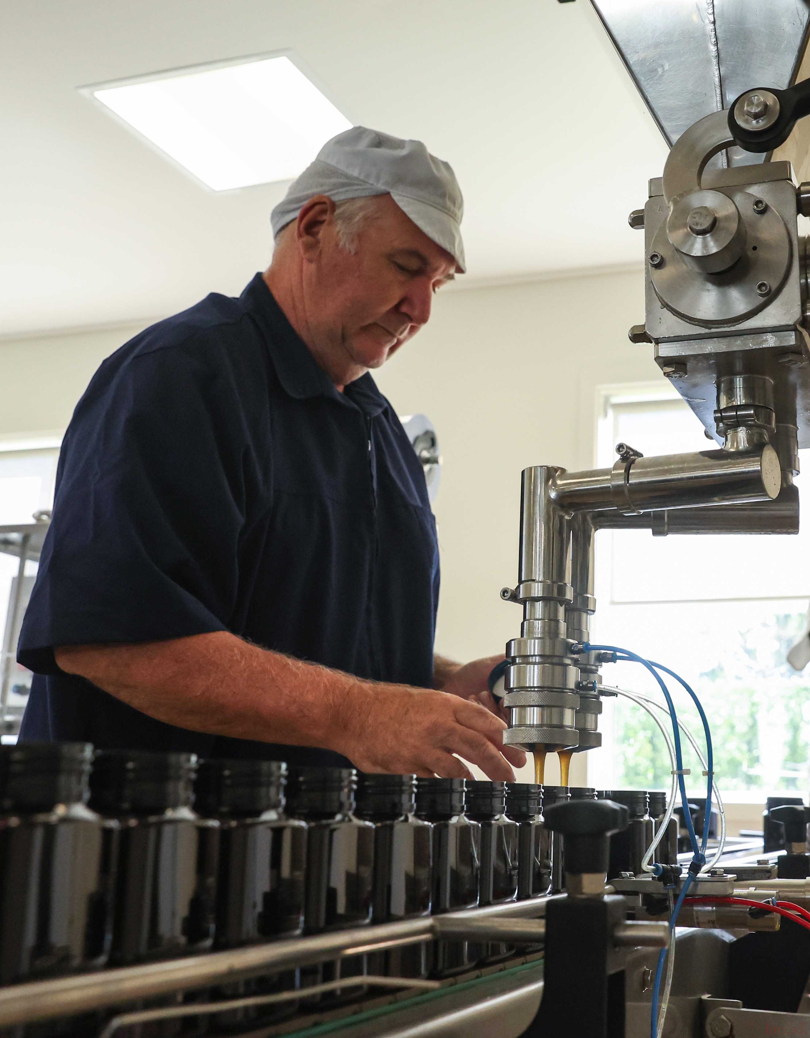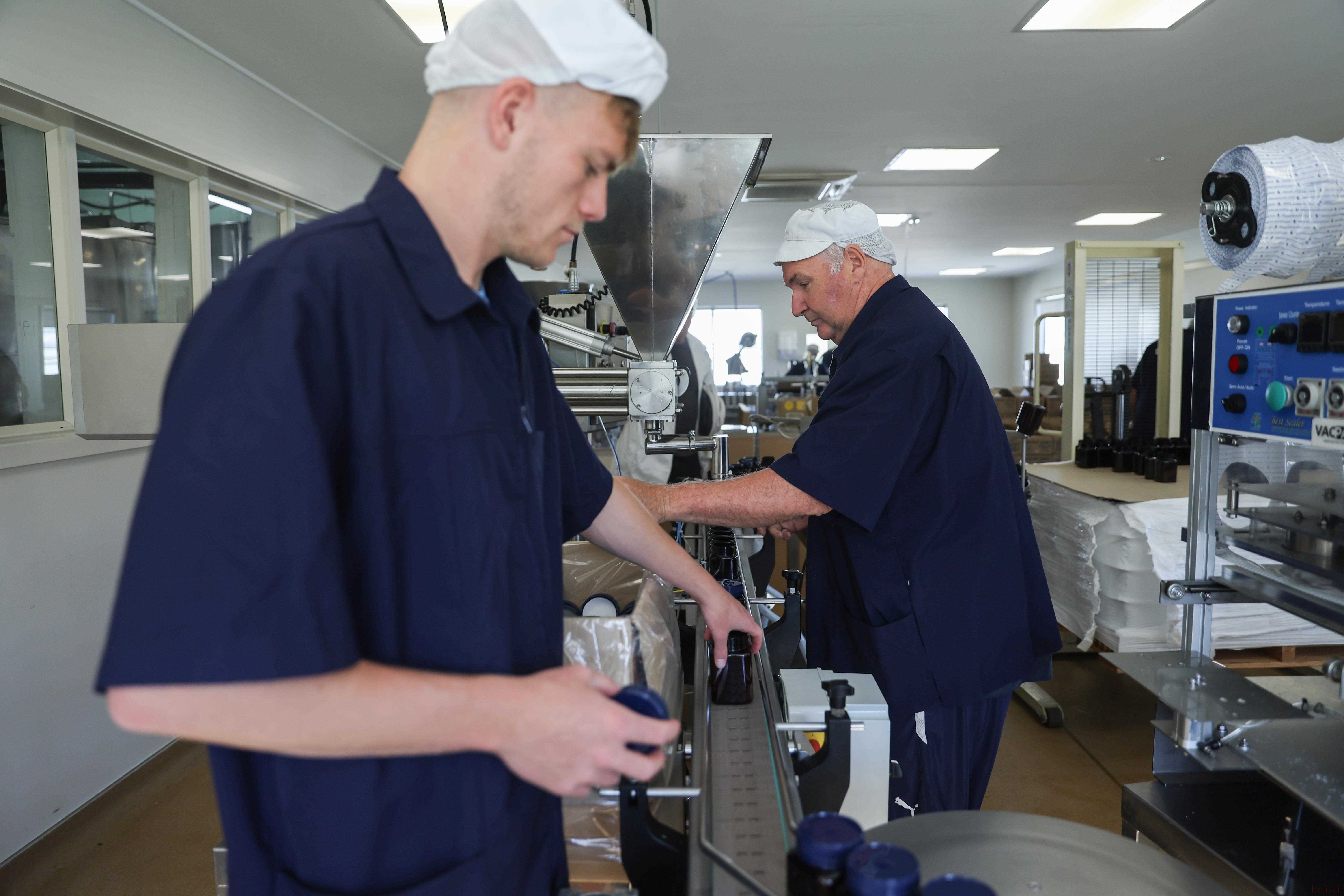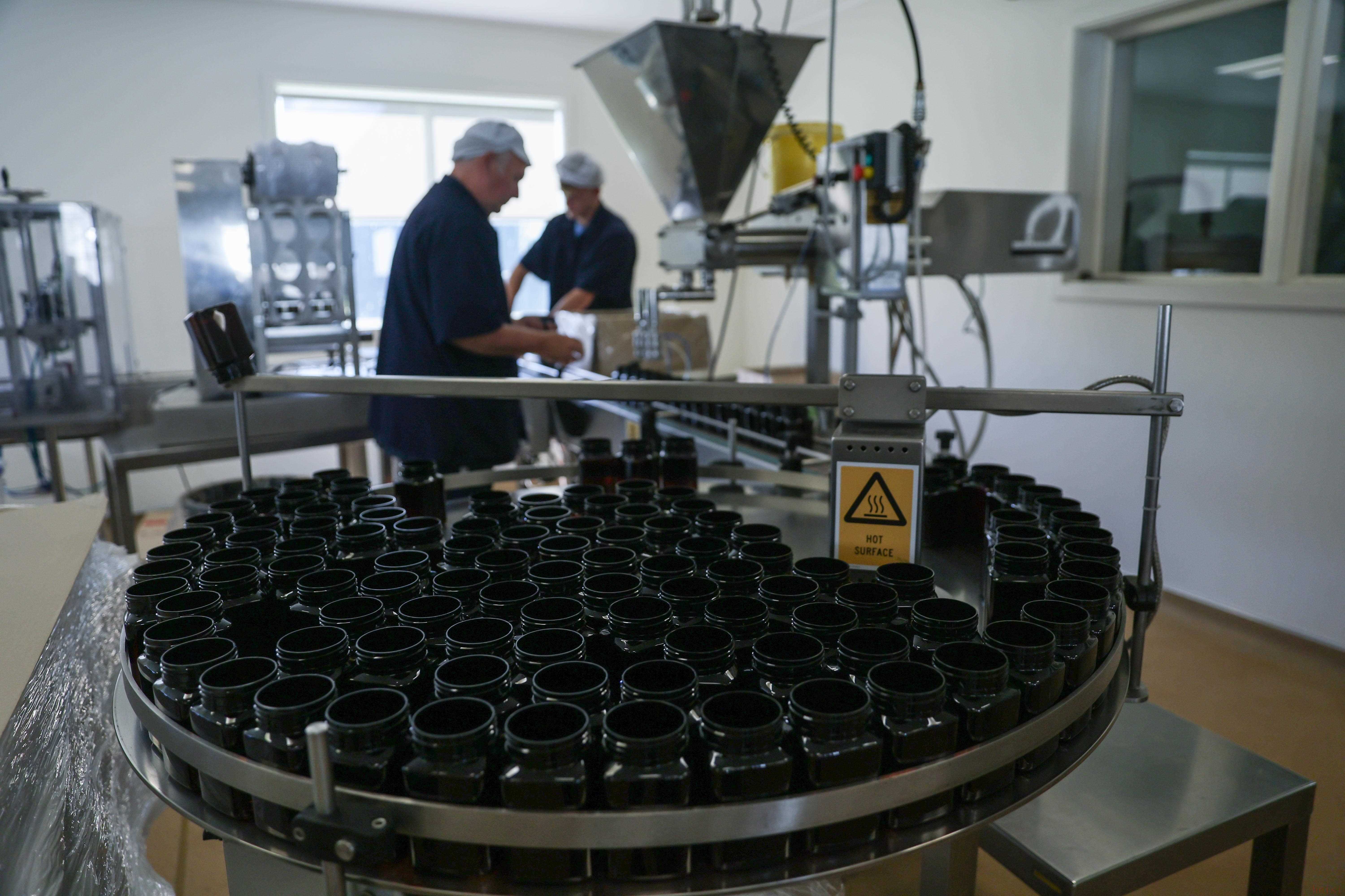 10月29日,在新西蘭北島一家蜂蜜生產(chǎn)企業(yè)的生產(chǎn)車間,工作人員在流水線上工作。新華社記者 龍雷 攝