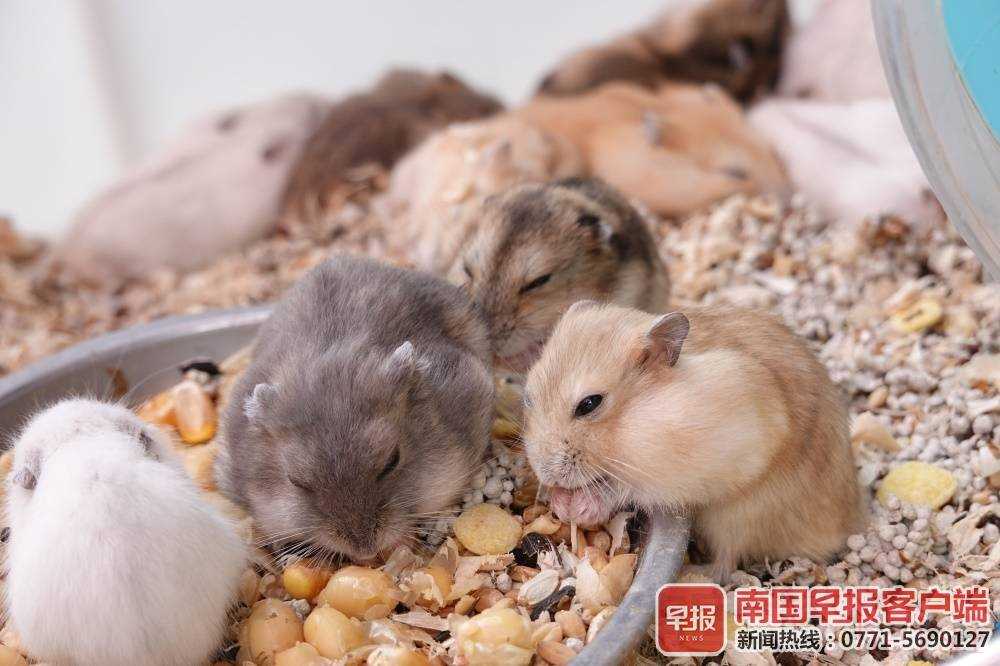 1月10日,在廣西花鳥交易市場寵物區(qū),不少家長帶著孩子在選購小倉鼠。蔣女士告訴記者,鼠年“鼠寵”很受歡迎,目前倉鼠價格穩(wěn)定,約8~10元,品種繁多,有“銀狐”“布丁”“三線”“紫倉”“金絲熊”等。目前,各縣前來批發(fā)的人也不少,有的一次購買兩三百只。