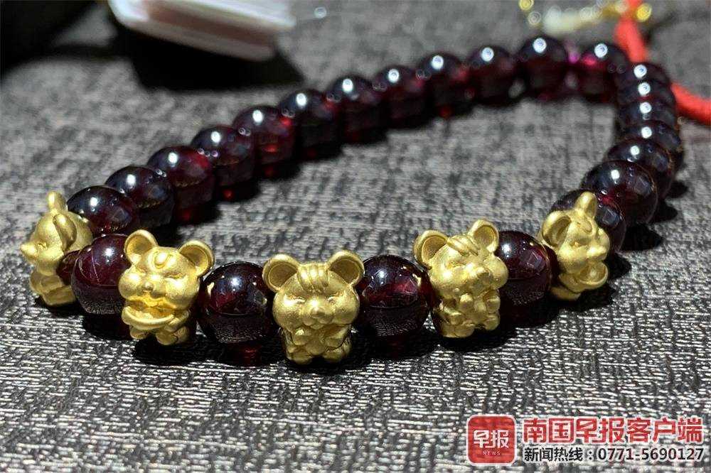 柜臺導(dǎo)購告訴南國早報客戶端記者,每年春節(jié)前,當(dāng)年的生肖黃金飾品都會熱銷。今年“金鼠”飾品都已到貨,來選購的人也不少。比較暢銷的是小老鼠形象的手鏈墜,搭配手繩,輔以轉(zhuǎn)運珠寓意美好,最受消費者青睞。南國早報客戶端記者看到,不少品牌首飾柜臺里,項墜、手鏈墜多以“3D硬金”為主。導(dǎo)購表示,該工藝金飾和當(dāng)天金價不掛鉤,通常采用“一口價”,一顆手鏈墜花千余元就能帶回家。