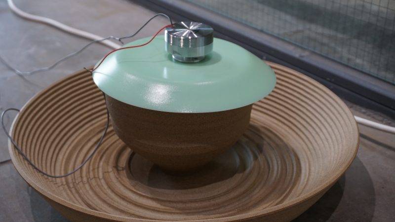 Cheri尤記得童年時在游樂場中聽到的聲音,橡膠的悶響與金屬的清音啟發(fā)她以陶瓷物料創(chuàng)造并呈現(xiàn)各種未成之聲的誕生與碰撞,作為對城市節(jié)奏流變的靜謐回應(yīng)。展覽呈現(xiàn)了Cheri獨(dú)立創(chuàng)作的一系列聲音檔案,并從中發(fā)展出兩件與他人合作的作品。工程師Dmitry Po利用Cheri的聲音檔案創(chuàng)作出響應(yīng)式聲音裝置,聲調(diào)會隨展場內(nèi)的微小事件而衍生出無窮變化。另一件影像作品中,舞者Bowie Siu將製鈴的過程化為一套身體動態(tài)。
