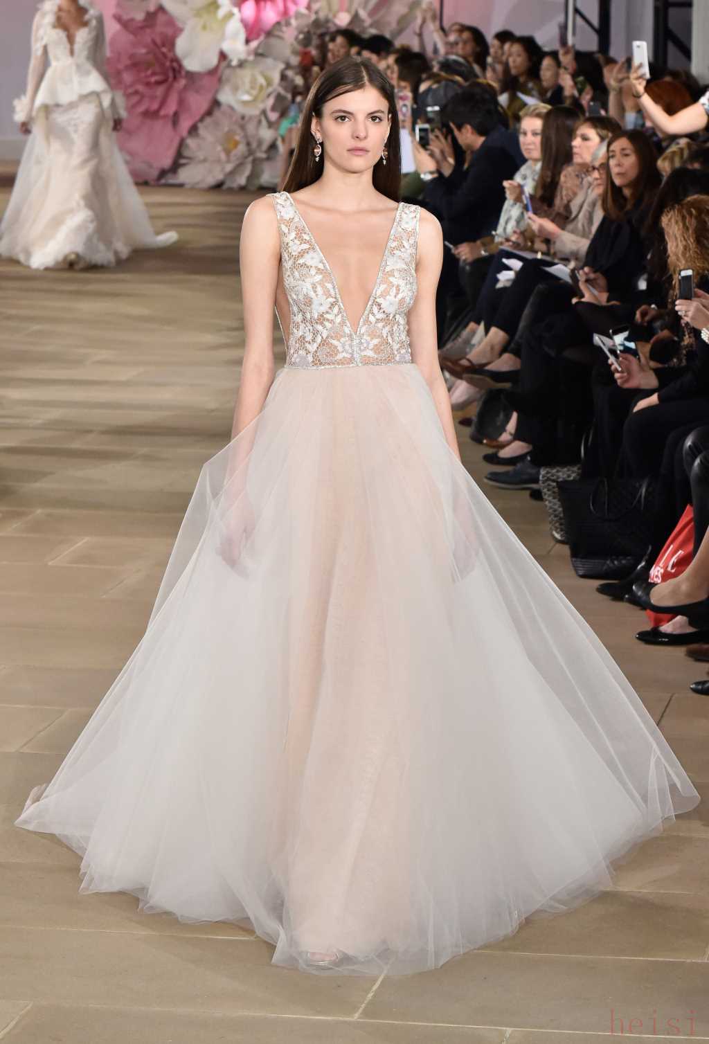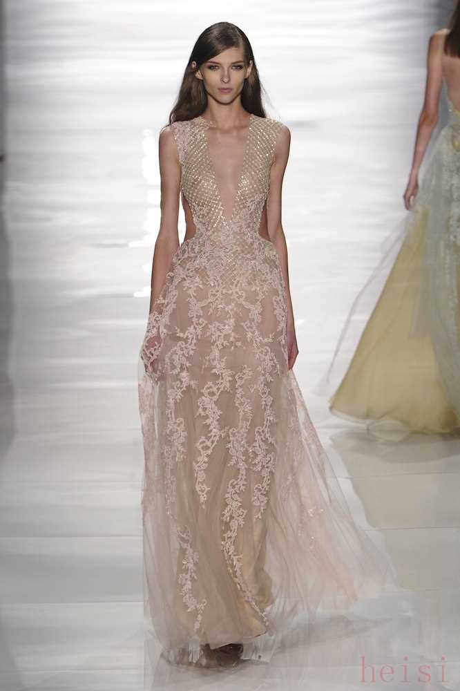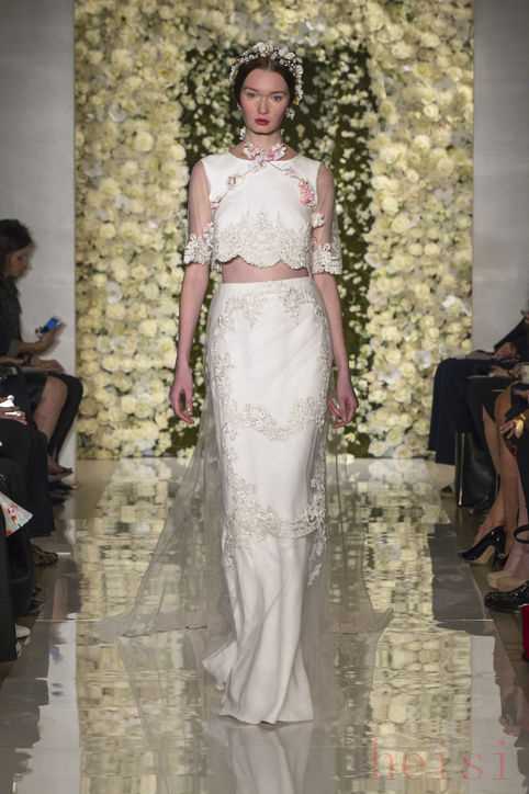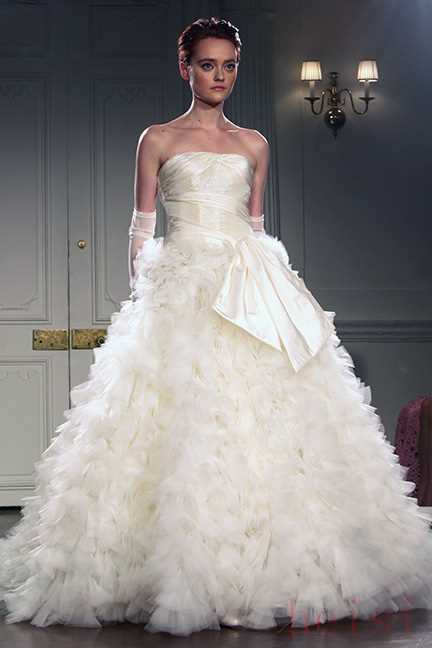 Reem acra出生于黎巴嫩的貝魯特,她采用精巧手織蕾絲讓隆重的宮廷婚紗在皎潔的白色中透出歲月的印跡,又巧妙地融合當(dāng)前的流行元素:刺繡、緞帶、薄紗、綴珠造型摩登,透露出新娘的華美氣質(zhì)。