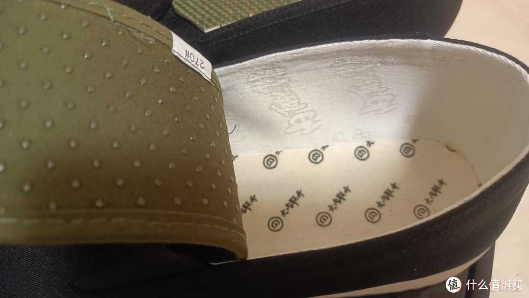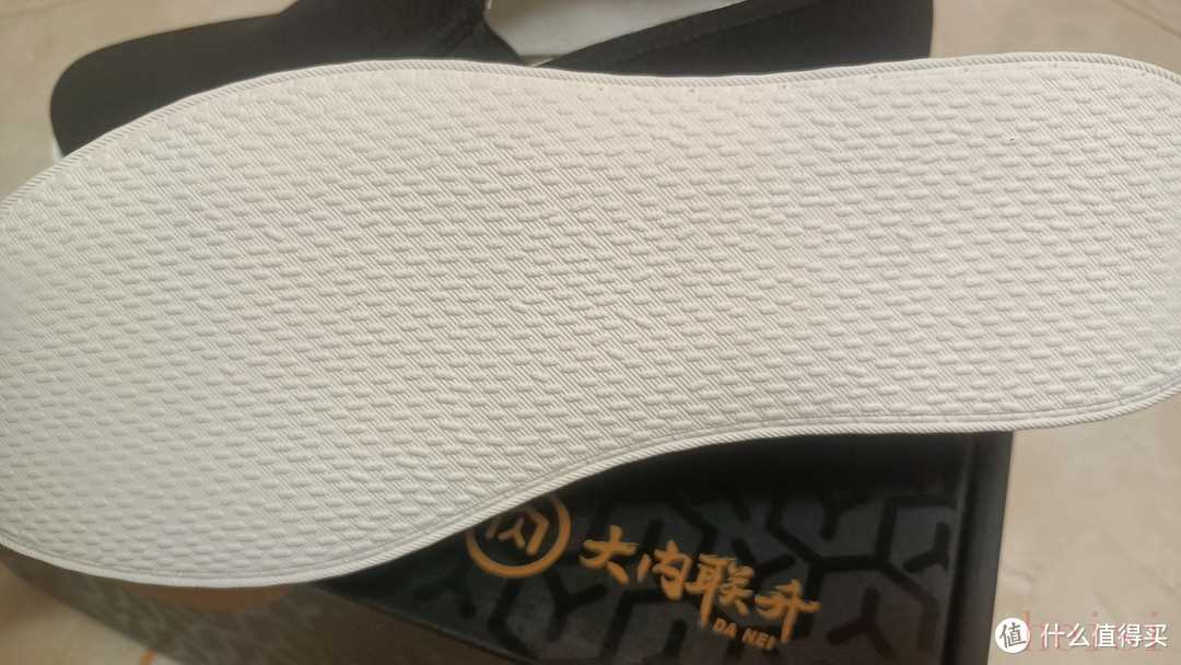 鞋墊是綠色的,不容易顯臟,底部也單獨做了防滑設(shè)計,標了”大內(nèi)聯(lián)升”的水洗標。