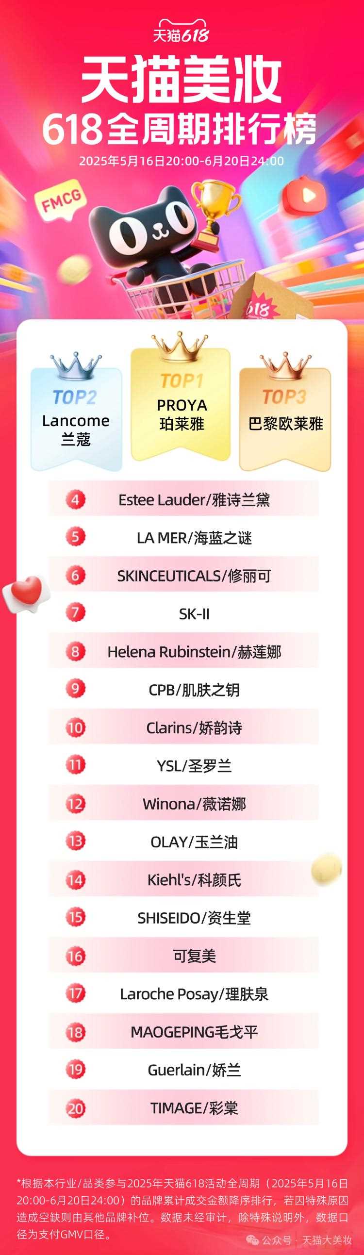 今年618大促,毛戈平仍然上演了一出黑馬的好戲,天貓美妝618搶先購(gòu)全周期TOP20榜中,毛戈平首次沖進(jìn)了榜單,居第17。珀萊雅公司旗下的彩棠也是表現(xiàn)出色,首次進(jìn)TOP20榜。
