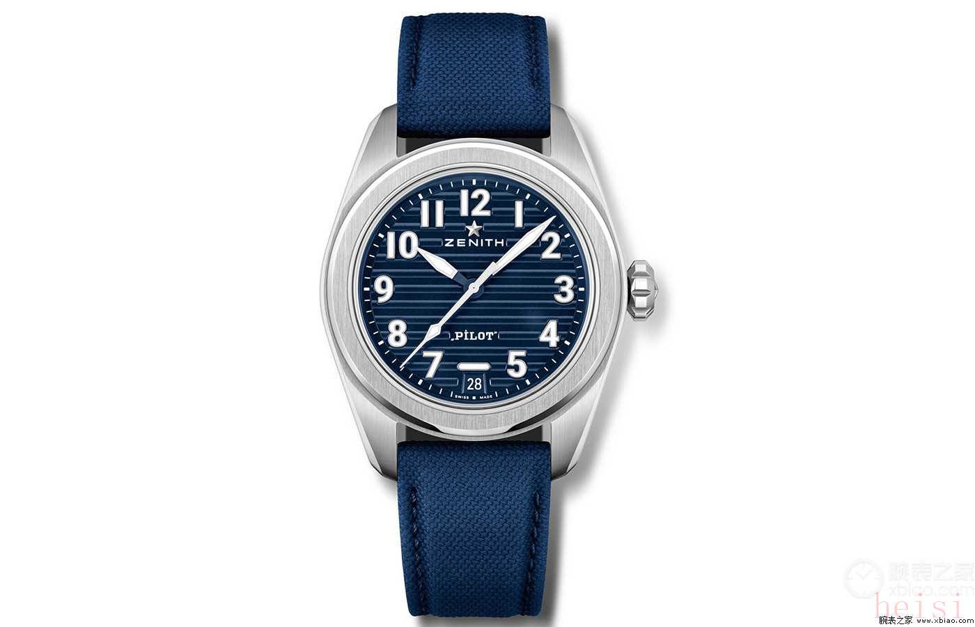 腕表點評:真力時飛行員系列腕表自2013年更換了產(chǎn)品設(shè)計風(fēng)格,以更加現(xiàn)代、簡潔的外觀打造了奢華飛行員腕表。圖中表款為品牌在去年推出的藍色版本三針款型號,延續(xù)了40毫米表徑設(shè)計,精鋼殼身的表面還做了垂直緞面打磨處理,搭配拋光倒角,依舊保留了洋蔥頭表冠設(shè)計。表盤上裝飾了橫向凹紋,特色鮮明的超大尺寸夜光阿拉伯?dāng)?shù)字時標(biāo)清晰醒目。腕表內(nèi)部搭載了表廠自制El Primero 3620型高振頻機芯正在高速運轉(zhuǎn)。空擺陀形似機艙儀表盤上必不可少的“人工水平儀”,非常精美,機芯滿鏈后可提供60小時動力儲存。腕表防水深度為100米。
