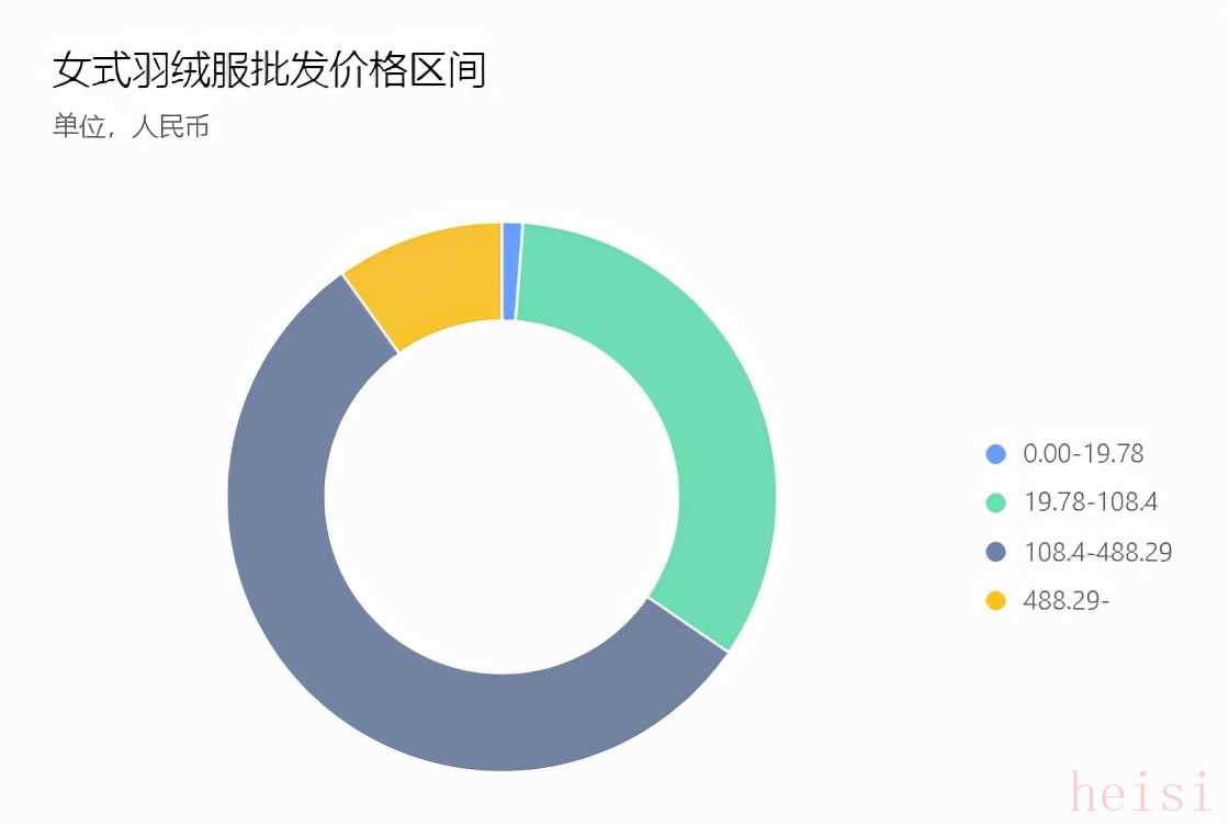 可以看出,108.4元-488.29元這一價(jià)位是大多數(shù)跨境賣家在進(jìn)行女式羽絨服采購時(shí)的偏好價(jià)格區(qū)間。
