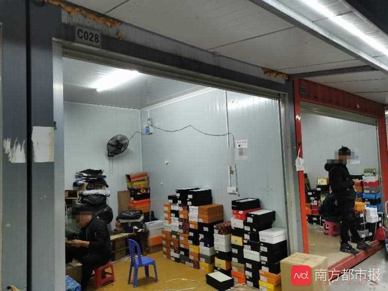 廣州荔灣,坦尾地鐵站旁,有一處建筑名為“翔龍雙魚(yú)籃球館”。這個(gè)室內(nèi)籃球館周?chē)袩緳n,還有露天停車(chē)場(chǎng)。燒烤檔和籃球館之間空地,兩三排無(wú)名鐵皮檔口不太引人注意。白天,它們關(guān)著門(mén),從外表看也無(wú)任何營(yíng)業(yè)跡象。晚上七八點(diǎn),鐵皮檔來(lái)了人,紛紛將卷簾門(mén)拉起。私家車(chē)、面包車(chē)、電動(dòng)車(chē)趕到此處,一摞摞名牌鞋盒被搬到檔口,似乎在進(jìn)行某種生意。