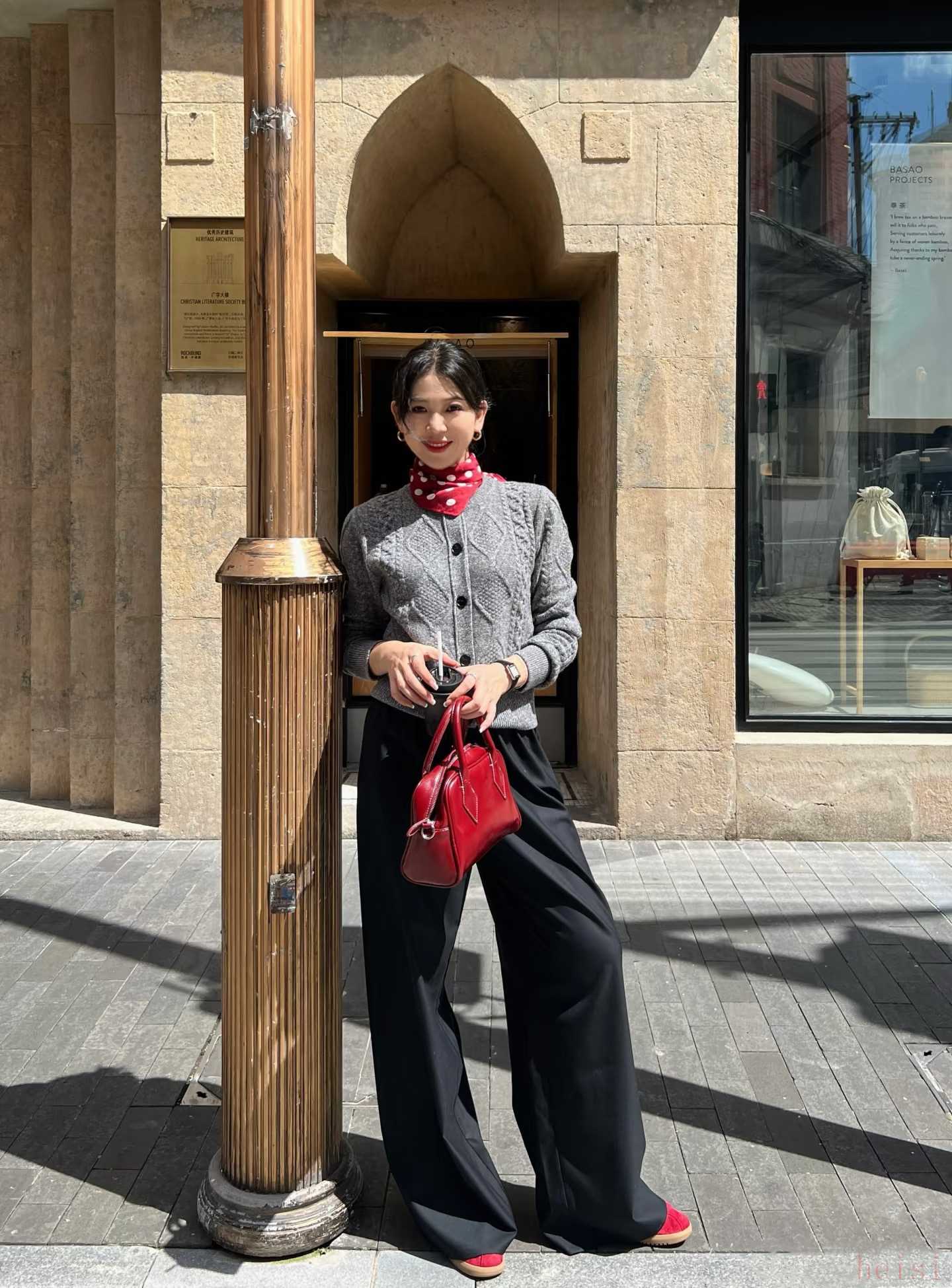 包包和配色,作為穿搭中的“細(xì)節(jié)”,利用包包與服飾之間的色彩呼應(yīng),可以通過(guò)細(xì)節(jié)來(lái)提升檔次。比如紅色包包與絲巾、鞋子顏色一致,整體穿搭一下就提亮了不少。