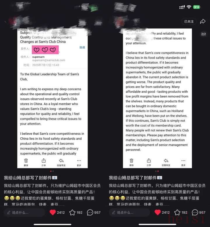 甚至還有會員給山姆總部寫信,反饋選品質(zhì)量問題,截至發(fā)稿,這條帖子已經(jīng)有近千條評論。
