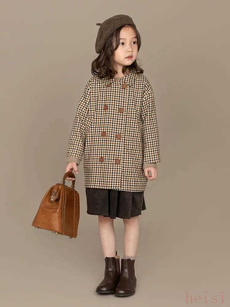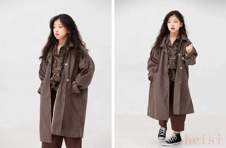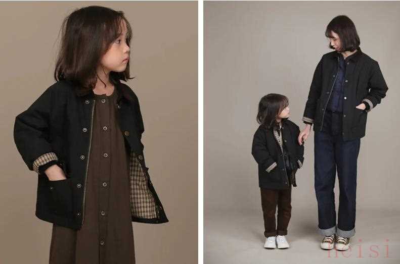 這件最大到160cm,不過卡其色已經(jīng)賣完了,只剩下經(jīng)典棕。我覺得棕色也蠻好看的,秋冬搭配起來超省心。模特的兩個(gè)look都很值得借鑒,褲子雖然店里也有賣,但還是建議大家去搜成人版的類似款。格紋褲腰比較低、背帶褲胯比較肥,都不太適合大朋友。