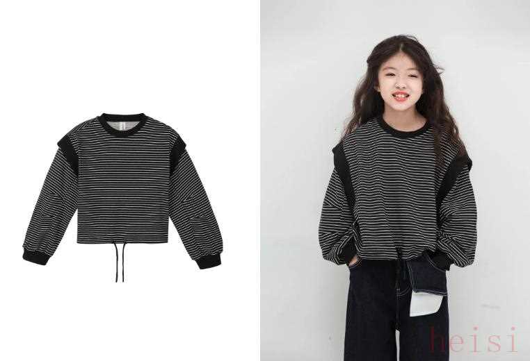 第二件單看可能不那么出彩,但是上身后會“真香”。小有設(shè)計(jì)感的Oversize版型,超級藏肉,又不會像成人的寬松款一樣,做得特別松垮,小個(gè)子也能駕馭。