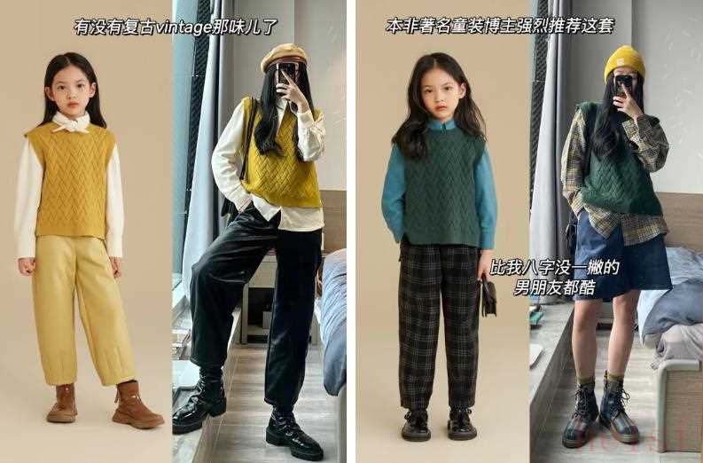 這兩件針織背心也很討我喜歡,買回去會是衣柜里玩彩色復(fù)古穿搭的好幫手。大朋友直接copy小模特這兩套完全不違和,是“元?dú)馍倥钡募纫暩邪 ?/span>