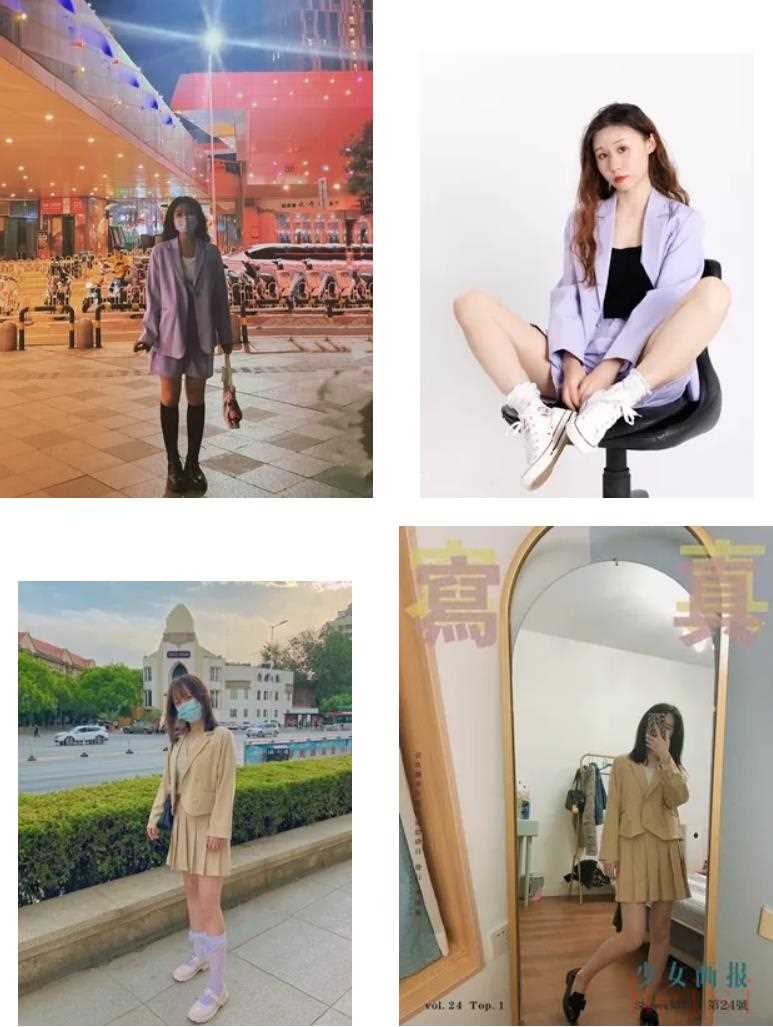 平時(shí)看成年模特穿紫色西裝,總覺得很有距離感,勾不起嘗試的欲望,下面左邊這套小模特穿出了又甜又酷的感覺,看得我蠢蠢欲動。右邊這種短款套裝呢,上身就特別顯腿長,小個(gè)子也能凹出大長腿。