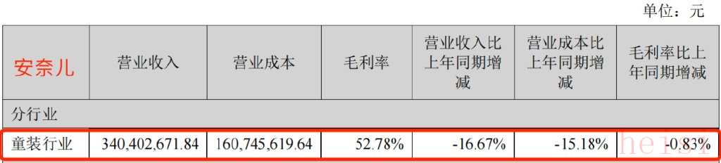 安奈兒在童裝業(yè)務(wù)上營收3.40億元,同比減少了16.67%;整體歸母凈虧損3007.91萬元,同比增加15.91%。