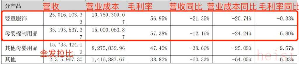 按產(chǎn)品劃分可見,與童裝相關(guān)兩個板塊雙雙下滑: