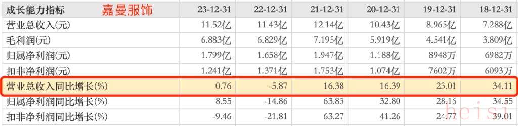 翻閱過往財(cái)報(bào)也可見,嘉曼服飾的總營收增速正逐漸放緩。從2018年的同比增長為34.11%,到2020年驟降至16.39%,再到2022年出現(xiàn)負(fù)增長,2023年盡管有所回暖,但僅錄得0.76%的微弱增長。而安奈兒的總營收增速則是從2018年的17.56%,降至2019年的9.41%,隨后就深陷于負(fù)增長狀態(tài)。