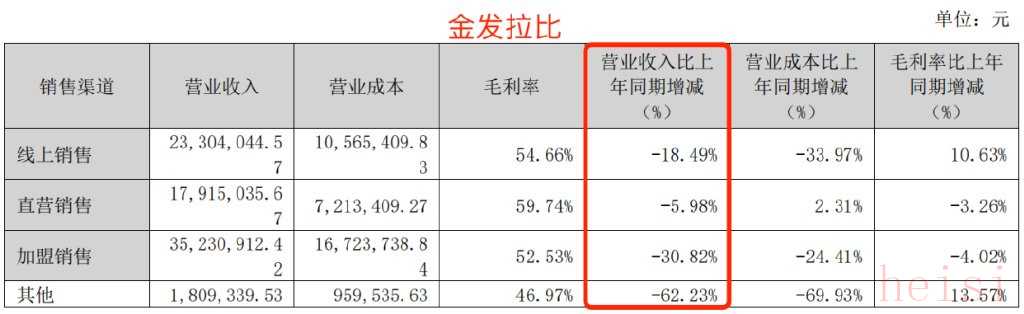 由此,也連累了歸母凈虧損同比增加136.37%至275.39萬元。在報(bào)告期內(nèi),金發(fā)拉比所覆蓋的7個大區(qū),只有華南區(qū)實(shí)現(xiàn)了同比增長達(dá)9.41%。在此背景下,其實(shí)體門店大幅關(guān)閉,直營+加盟數(shù)量共計(jì)76家。與此同時,直營和加盟渠道的銷售收入分別同比減少5.98%、30.82%。除此之外,線上渠道的銷售情況也同樣不樂觀,同比減少18.49%。
