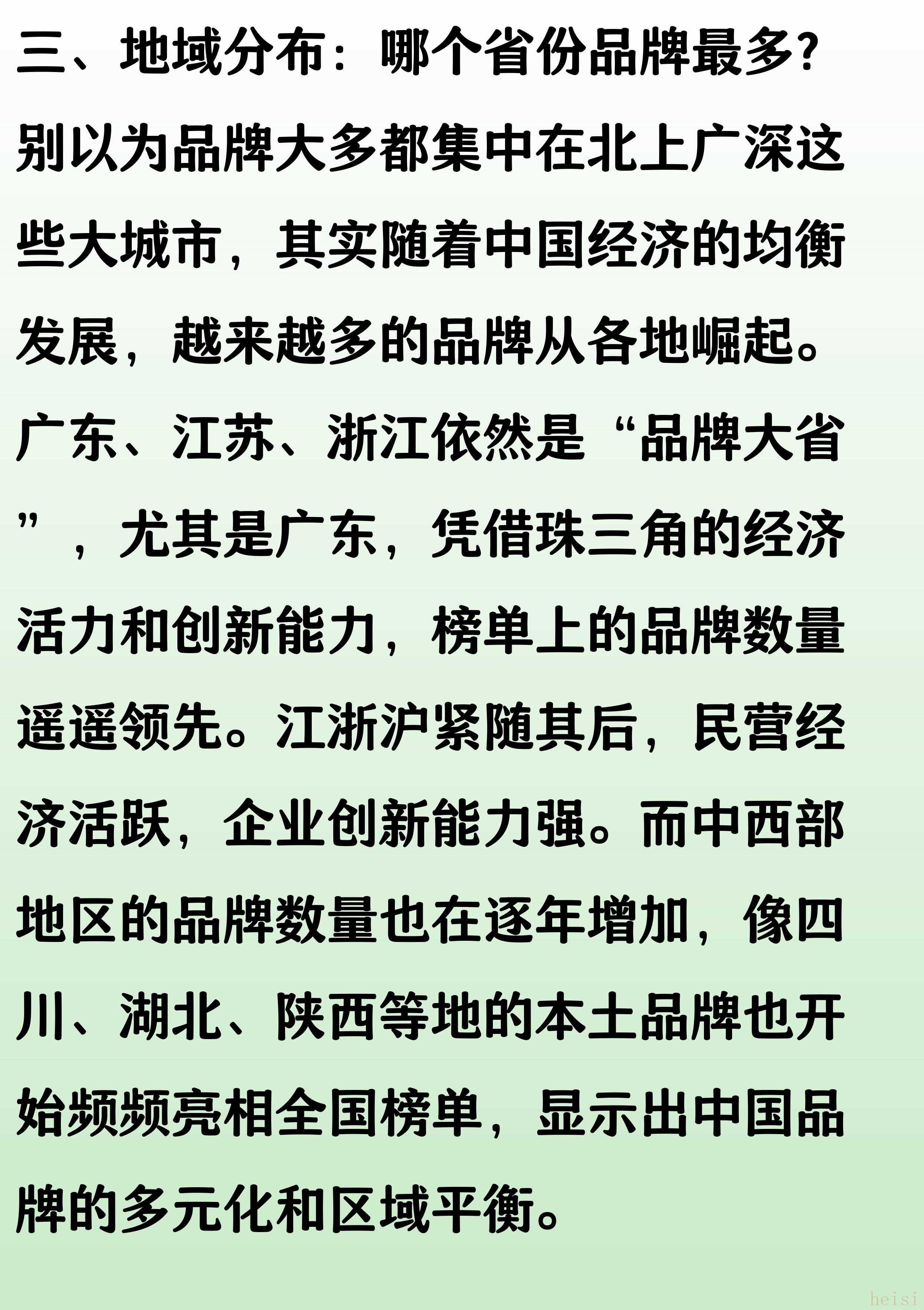 3. 地域分布:廣東、浙江、江蘇、北京、山東等地的品牌數(shù)量較多,這五個(gè)省份的品牌數(shù)量占到了500強(qiáng)品牌總數(shù)的60%。