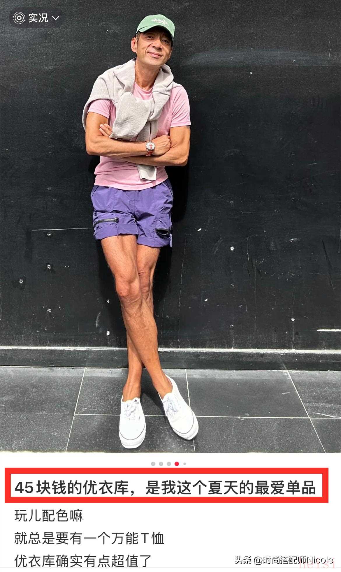 而改成優(yōu)衣庫的T恤襯衫或者迪卡儂的運動套裝后,既保留了成熟男人的穩(wěn)重,還減齡不少。瞬間,整個人變得清爽、有活力,那種“熱愛生活、堅持運動”的健康氣息撲面而來,油膩感一掃而空。