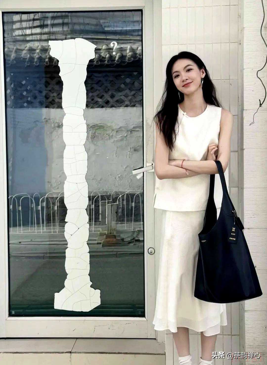 白百何的字母款帆布包照樣背出松弛感。