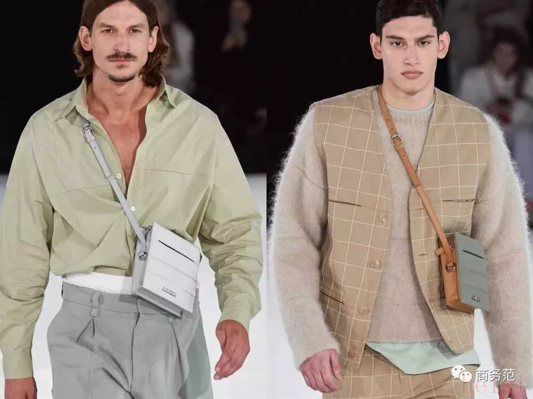 而這兩年ins上超火的南法設計師品牌Jacquemus,新一季也出了男款斜挎包,都是高級的莫蘭迪色系,短肩帶介于胸包和斜挎包之間。