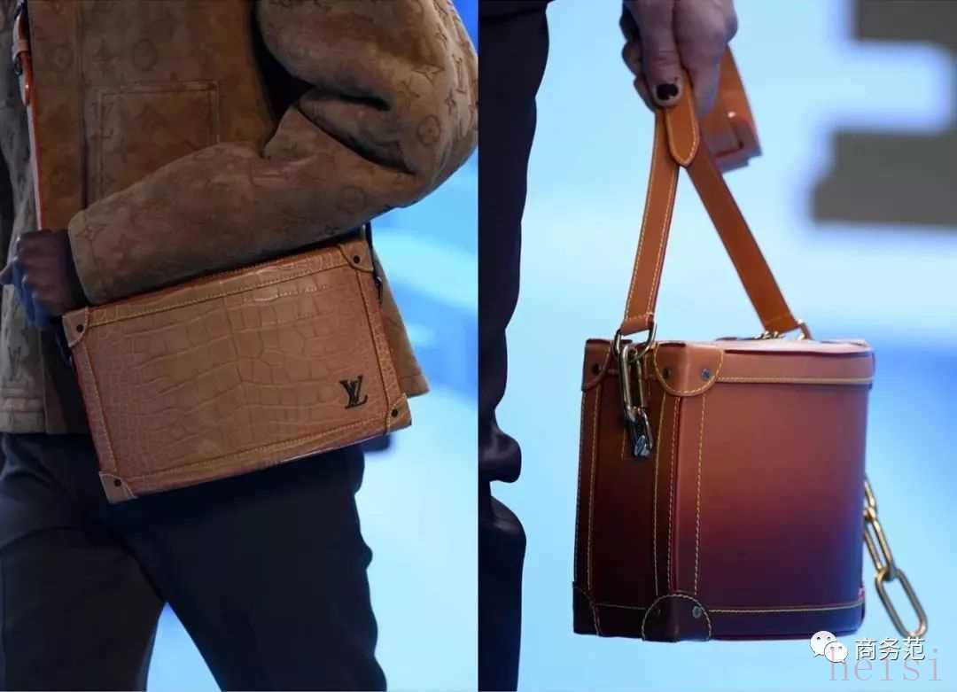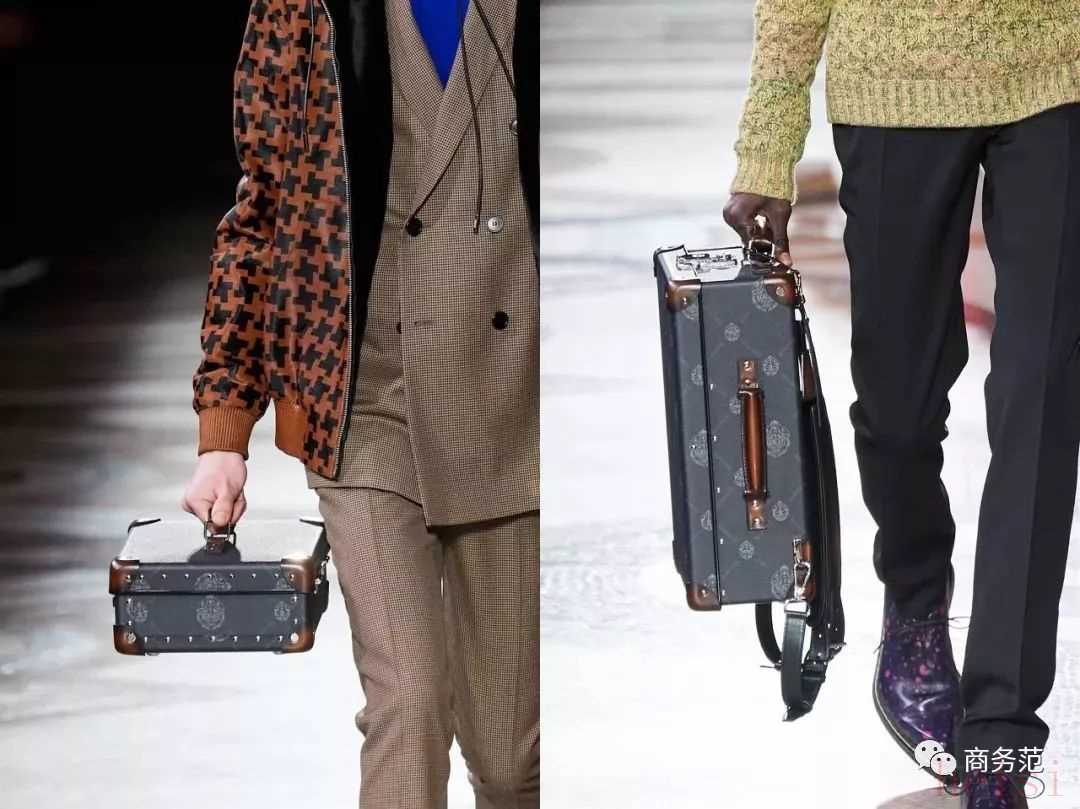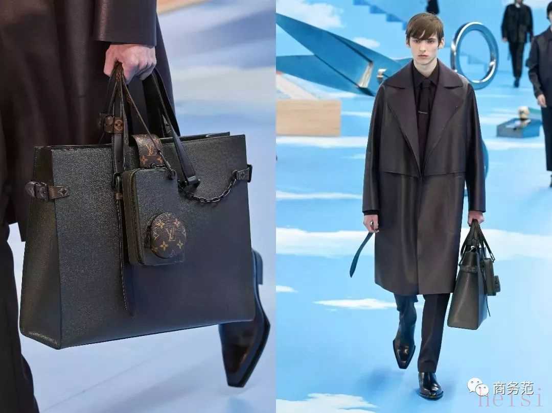 而到了2020秋冬系列,男包也有延續(xù)這一趨勢,秀場出現(xiàn)這種公文包和手包的cp組合,拆卸靈活,采用老花拼色,時髦得恰到好處。