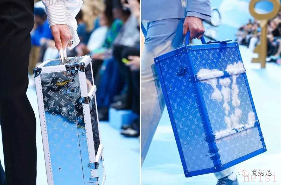 值得一提的是,LV新系列是以“Heaven on Earth”為主題,藍天、白云元素必不可少,所以新款中還能看到藍白色系的皮箱,夢幻十足~