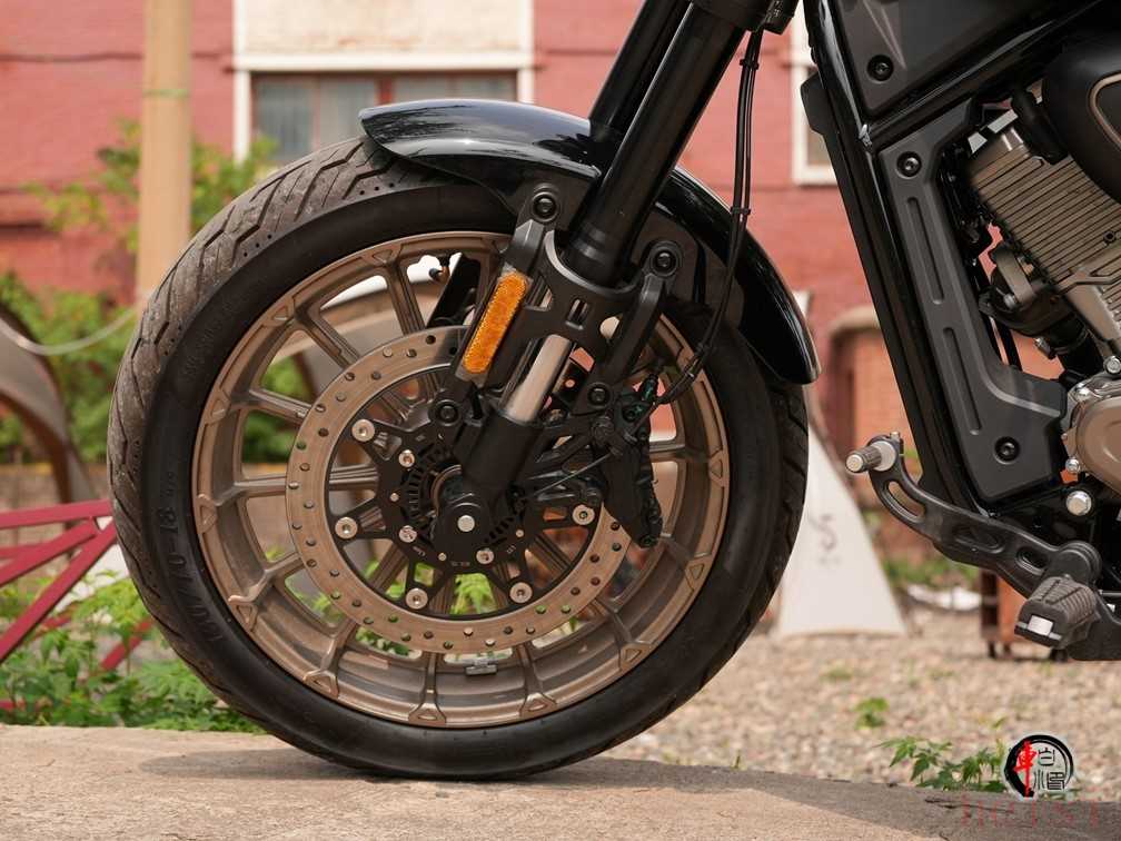 TCV450走的是經(jīng)典美式巡航的風(fēng)格路線。水滴形油箱、肌肉感恰到好處的裸露V缸、標(biāo)志性的前18后15寸輪轂組合,線條圓潤(rùn)流暢,整體比例協(xié)調(diào),避免了傻大黑粗的笨重感。車頭燈復(fù)古整流罩、縮短的前擋泥板、雙出魚雷排氣,強(qiáng)化了整車的運(yùn)動(dòng)氣息,復(fù)古元素直戳巡航愛好者的內(nèi)心。配色有亞淺灰、金屬黑等六種可選,營(yíng)造出低調(diào)有層次的質(zhì)感。