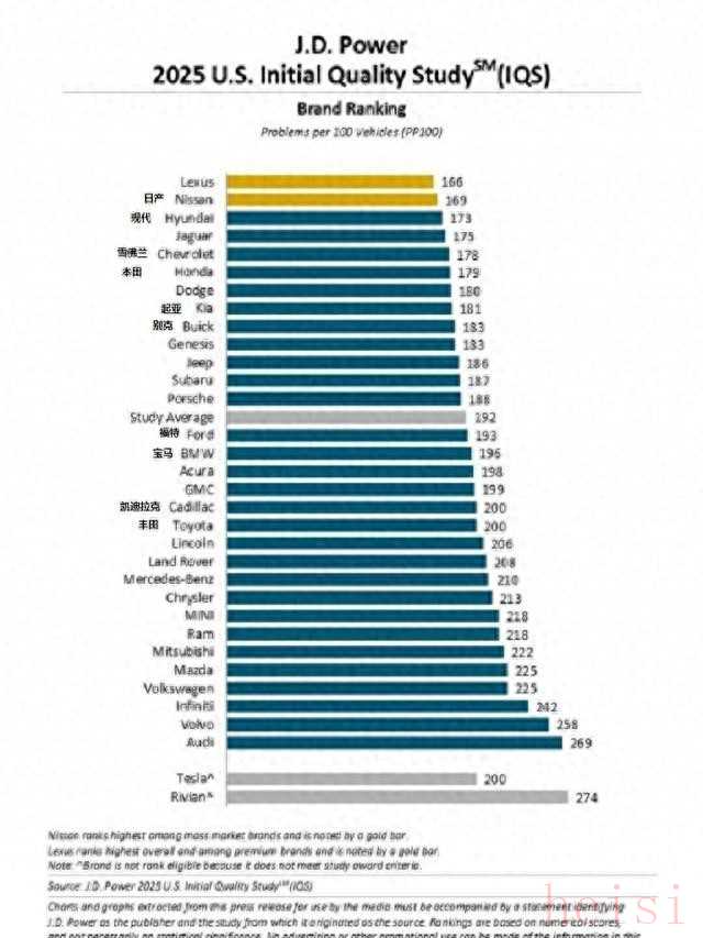 這兩天新鮮出爐的2025年J.D.Power新車質量榜真是大變天。