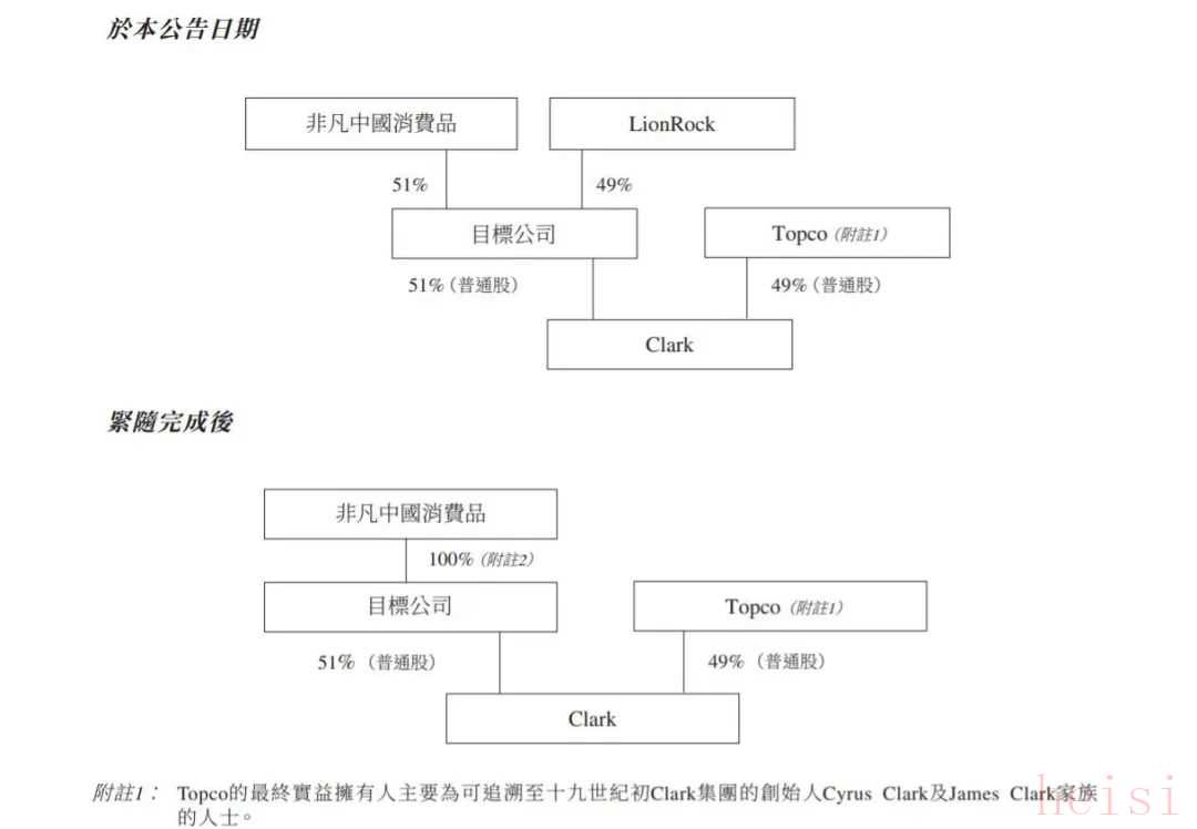 該目標(biāo)公司的核心資產(chǎn),為英國(guó)百年鞋履品牌Clarks(其樂)51%的股權(quán),李寧預(yù)計(jì)將直接獲得Clarks的控股權(quán)。