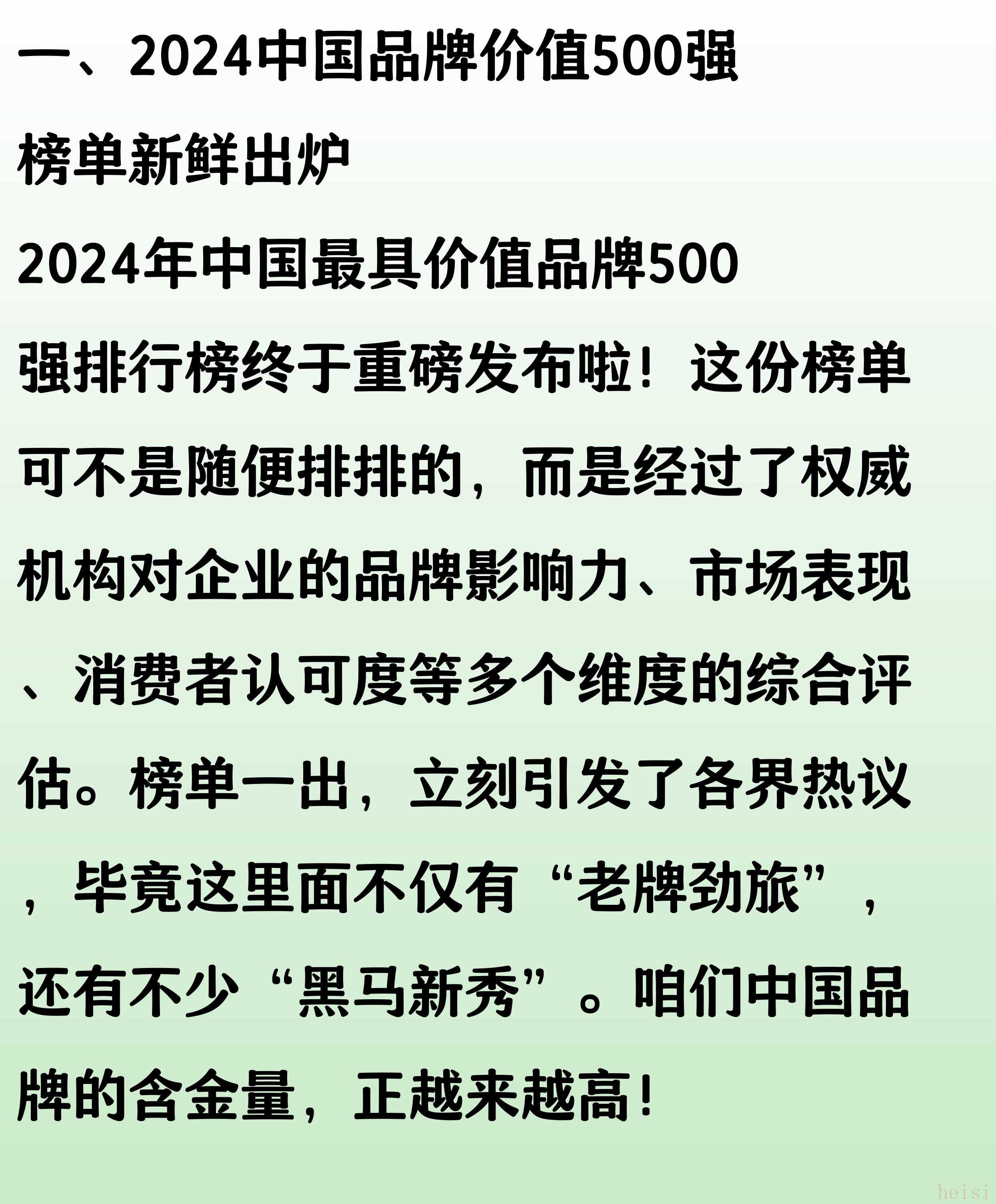 關(guān)于2024年中國最具價值品牌500強排行榜和《中國品牌價值500強報告》,我可以提供一些關(guān)鍵信息和解讀。