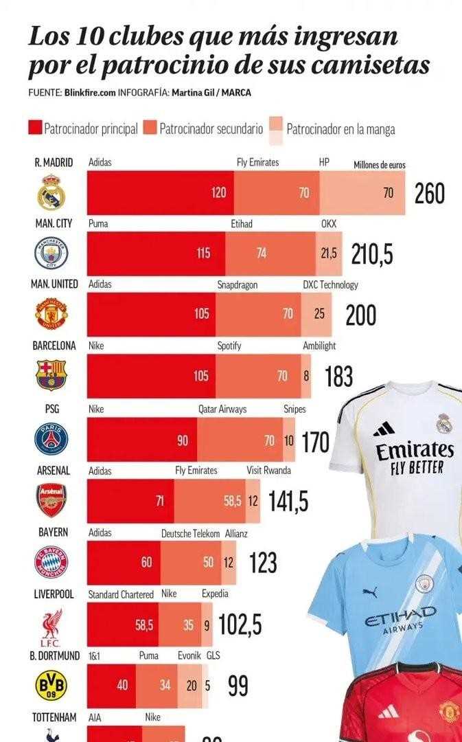 尤其阿森納居然連榜單前190都未能入選,這讓很多球迷困惑不已:曼城剛簽下10年10億英鎊的贊助合同,這份俱樂(lè)部品牌價(jià)值卻似乎被榜單低估;巴黎、馬競(jìng)的近年表現(xiàn)也未能得到足夠重視。而阿森納缺席更被質(zhì)疑是數(shù)據(jù)選取過(guò)于片面。