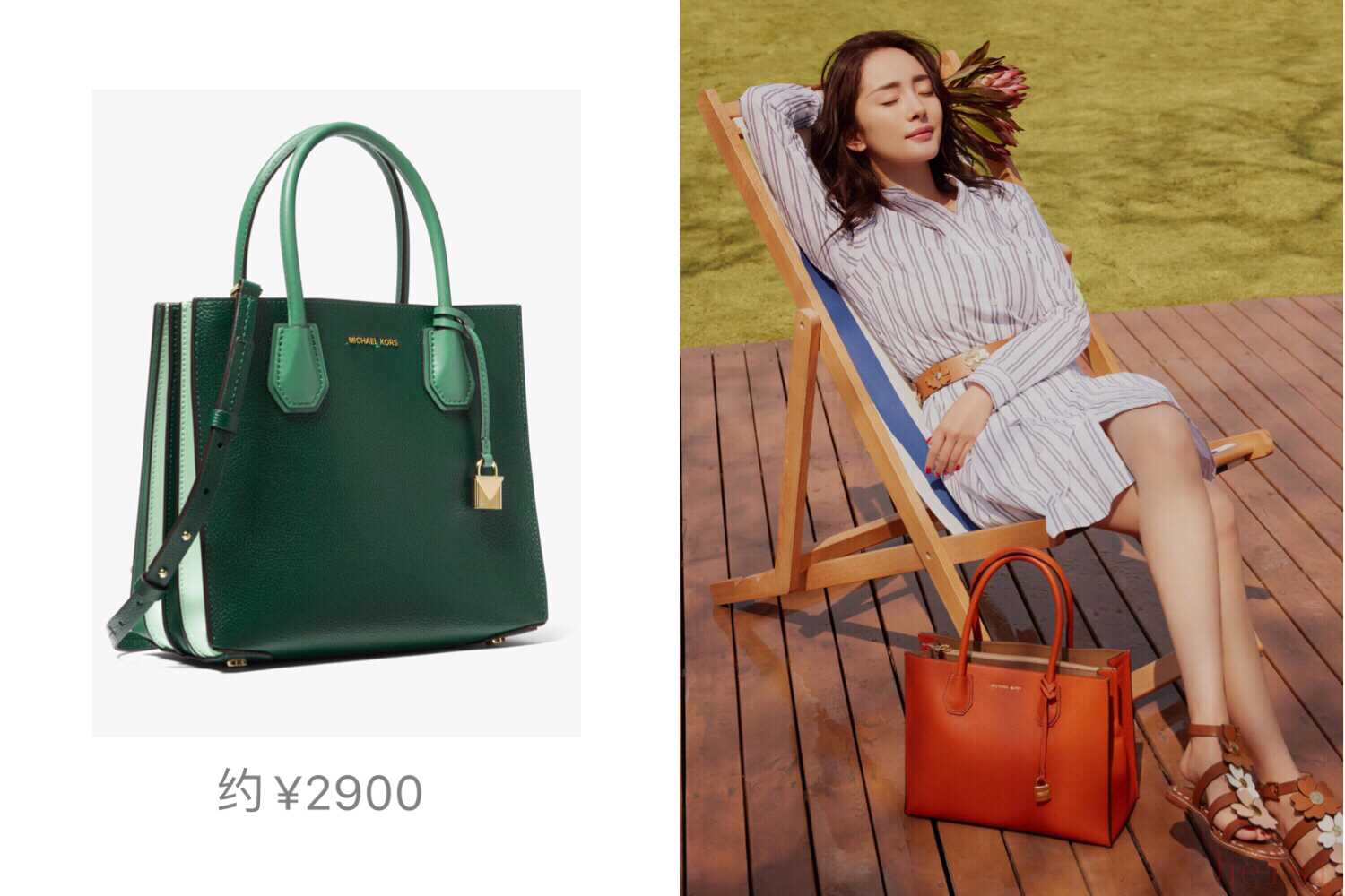MICHAEL KORS的Mercer是楊冪的最愛。它可以說是MK中綜合得分最高的一款包。小號可以休閑逛街背,上圖的中號非常適合通勤專屬。作為美國的輕奢品牌,材質(zhì)做工各方面也算良心。多款顏色搭配,顏值與實用性兼顧,也是值得擁有的一款包。