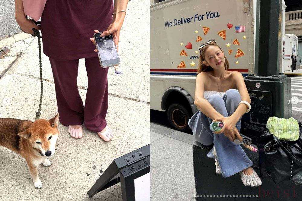 這個賽道仍然還是韓女,把丑到極致的野人五趾鞋穿出了時尚單品的味道。