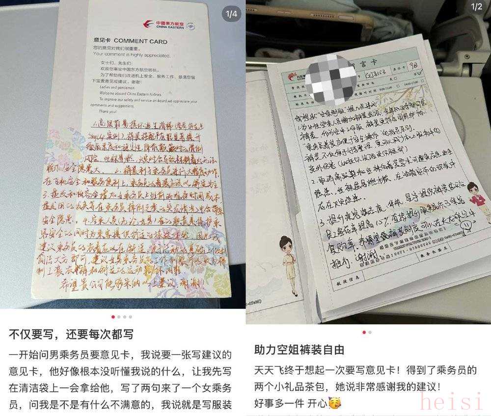 在小紅書上,越來越多年輕人加入了“給空姐寫意見卡”的活動中。