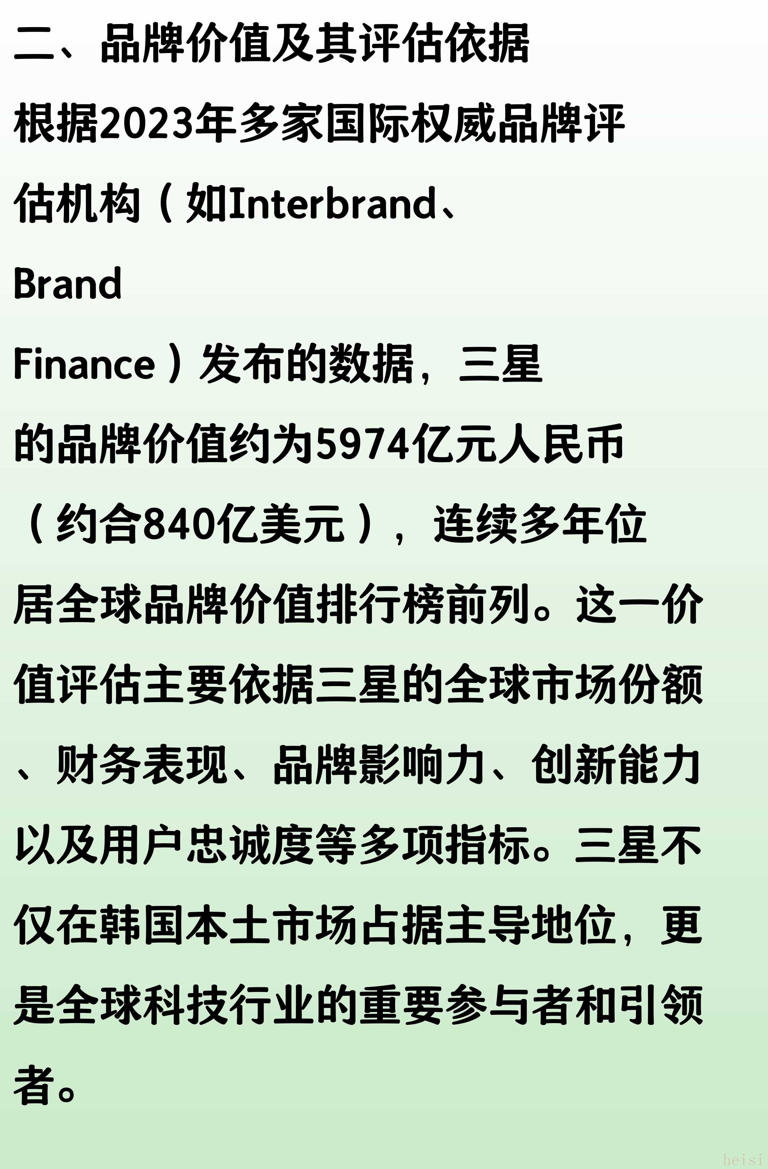 然而,需要注意的是,品牌價值是一個動態(tài)的概念,會隨著市場環(huán)境、公司業(yè)績等因素的變化而波動。因此,即使三星是目前全球價值較高的品牌之一,其具體排名和價值也可能隨著時間而變化。
