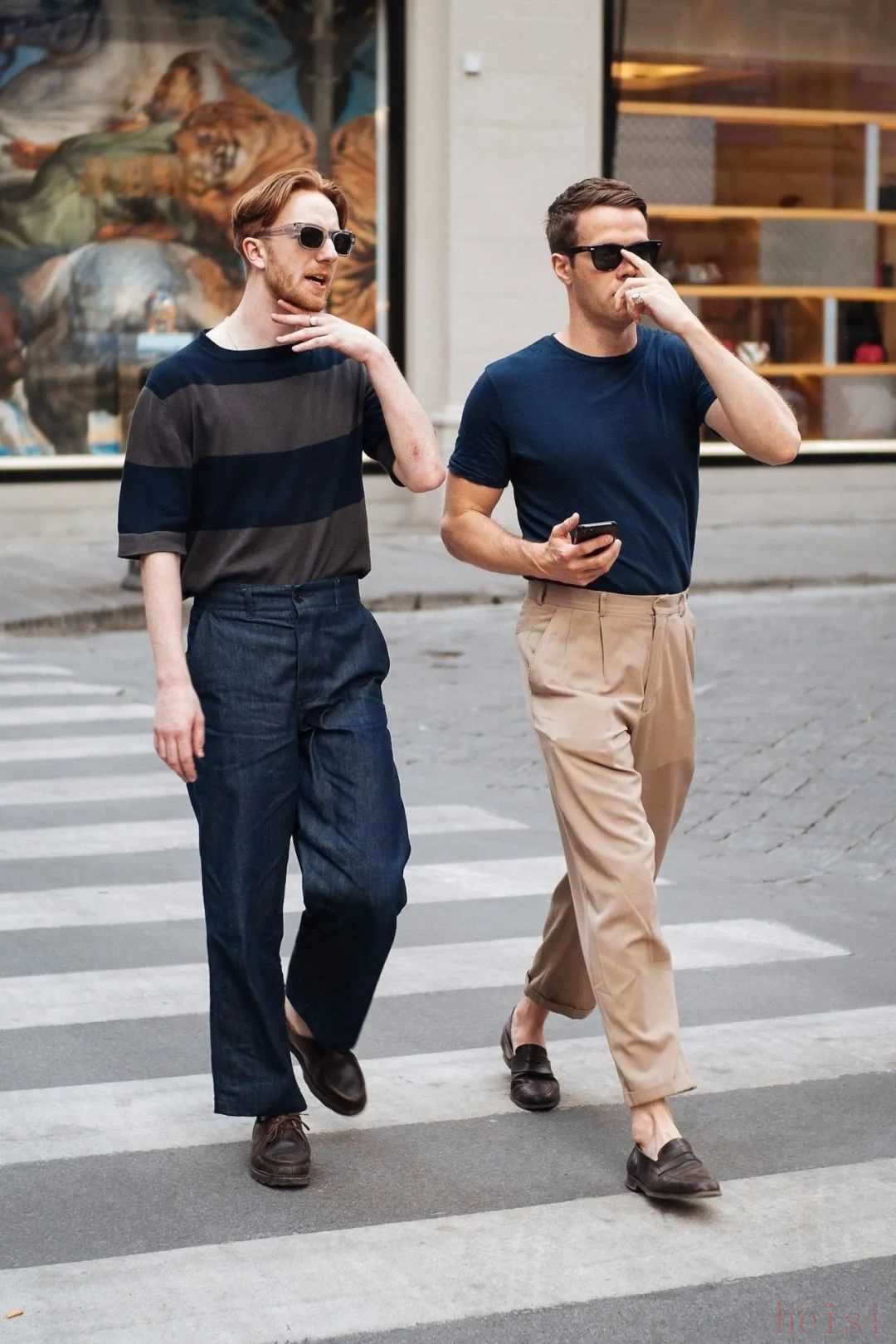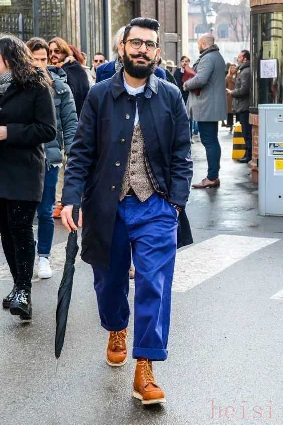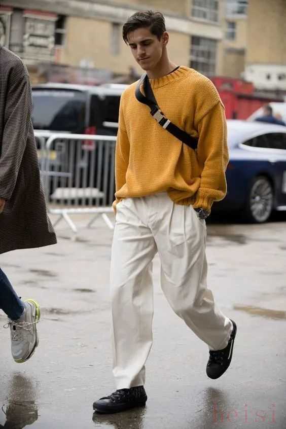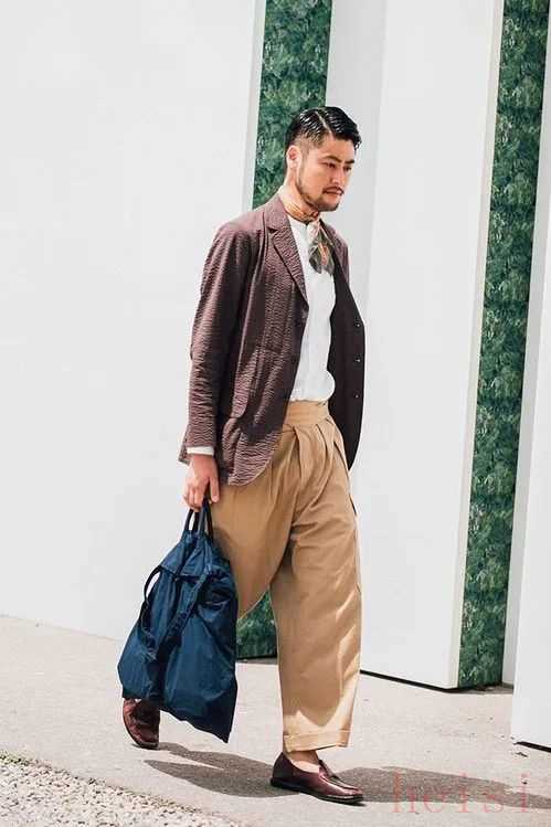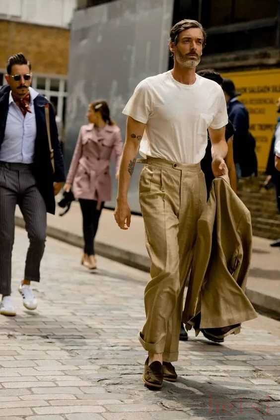 2. "對男性而言":闊腿褲同樣可以穿出"優(yōu)雅時髦"的風(fēng)格。它適合搭配合身的襯衫、Polo衫、毛衣或T恤,能修飾腿型,增加休閑感或打造復(fù)古、文藝、帥氣的街頭風(fēng)格。很多男明星和時尚博主都曾穿過闊腿褲,效果相當(dāng)不錯。