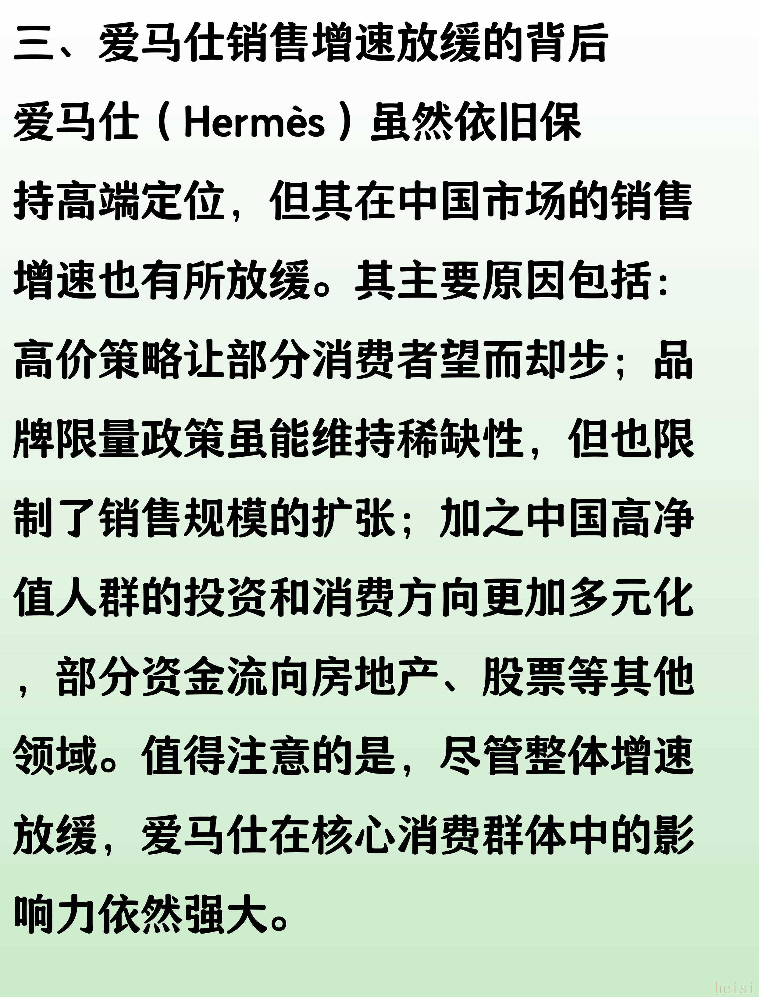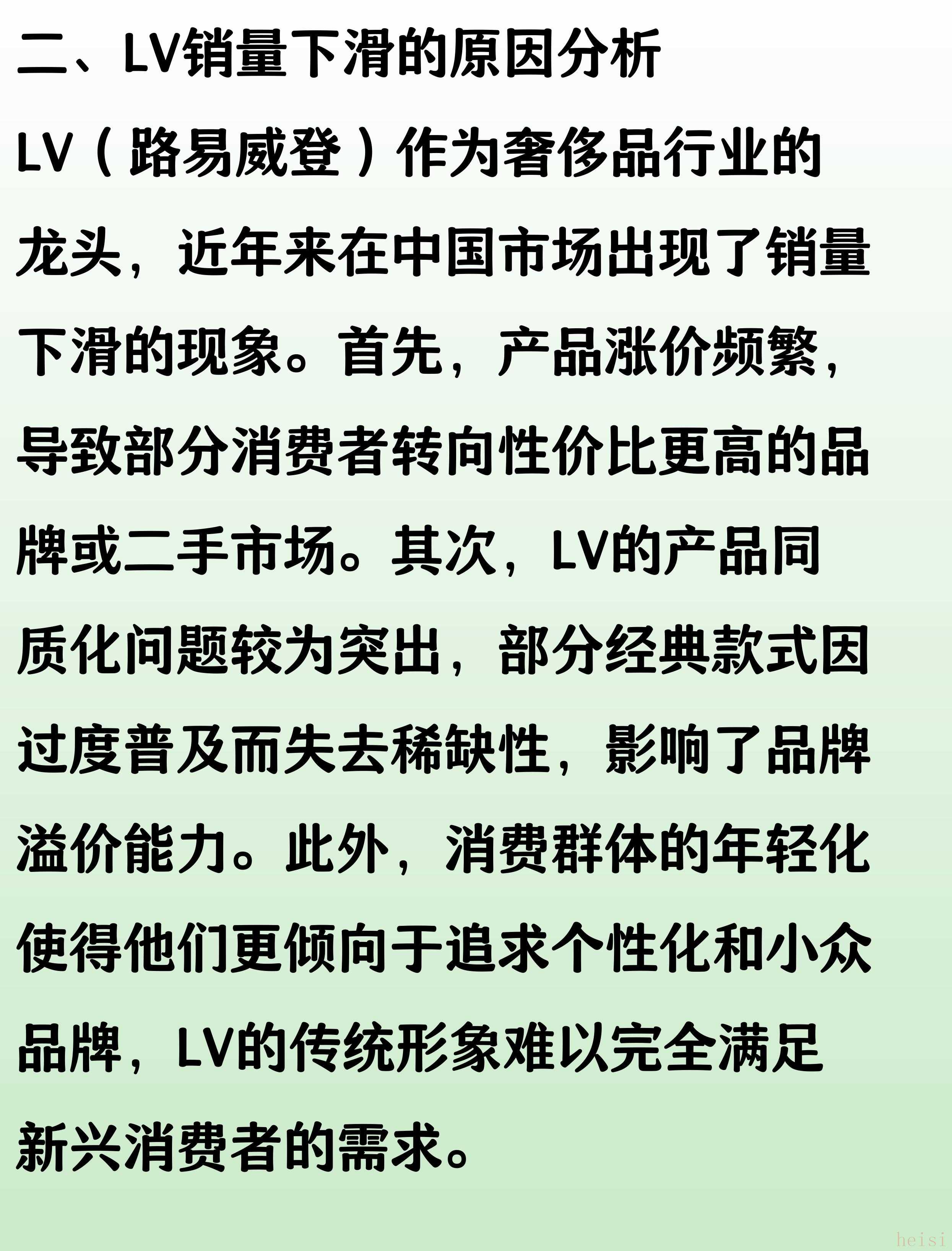 "銷量下滑的品牌(如LV、愛馬仕)可能面臨的原因:"