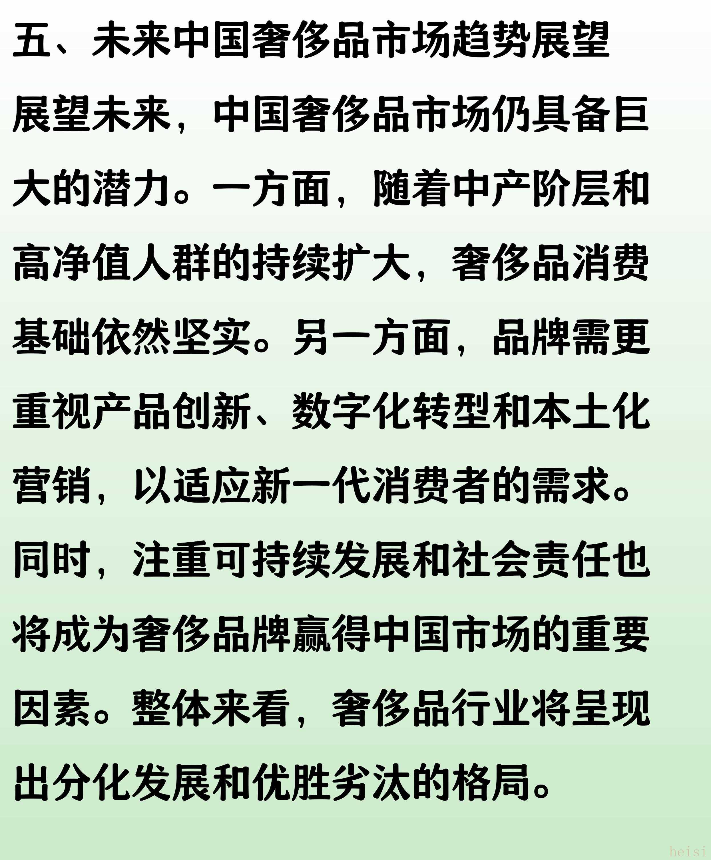 "理性消費(fèi):" 經(jīng)歷了多年的高速增長,消費(fèi)者變得更加理性,不再盲目追求奢侈品牌,更看重產(chǎn)品的實(shí)際價(jià)值、設(shè)計(jì)和品質(zhì)。