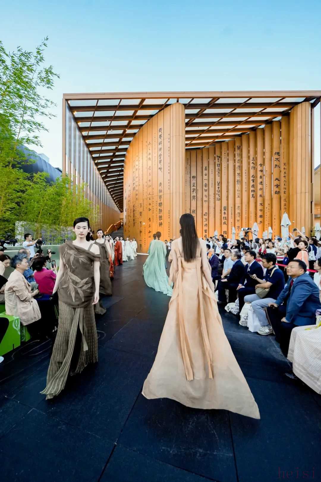暮色漸籠世博園,中國館悄然卸下展館的邊界,化身為連接古今、融匯東西的沉浸式東方美學(xué)時(shí)裝發(fā)布大秀現(xiàn)場。以“桃夭”、“暮山紫”、“松花綠”、“玄青”—— 四時(shí)之色描繪的秀道,如歷史長河蜿蜒流淌,見證東方生命力的永恒流轉(zhuǎn),文明跨越四季輪回,絲縷不絕,絲路精神奔涌不息。