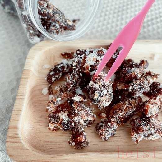 這個裝在小罐子里的,是混合了李子的羅望子果凍。我個人覺得味道一般,只能吃到甜味,完全沒有羅望子的味道在里面,里面的羅望子果肉和李子肉還要更甜。只能說適合喜歡甜口的朋友們了,我是有點接受不了。