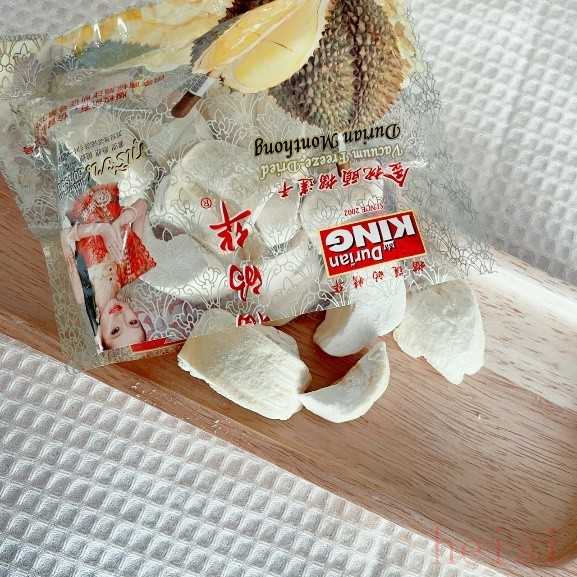 這個真的很大一包了,而且外包裝還很有心地做成了榴蓮的樣子。打開的話,里面又分成兩個小袋。這個牌子的榴蓮干呢,大小做的剛好,一口一塊,吃起來不會太費勁。味道很香很甜,剛送到嘴巴里,榴蓮的那個香味就溢出來了,而且入口即化,口感就像真的在吃新鮮榴蓮一樣。