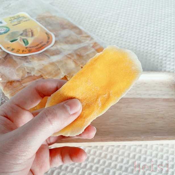 這款果干比第一款要好吃,吃起來感覺更多汁一些,而且吃得出來是成熟芒果做成的,渣感要少很多,而且也不像第一款一樣那么大塊,果肉大小切的比較適中。