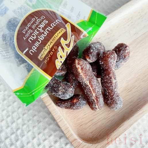 Sarach這個牌子下面有各種各樣的羅望子類的產(chǎn)品,我也在他們家買過很多次,真的是好吃到會一直回購的那種。而且這個牌子的羅望子果肉是我買過最飽滿最大粒的。他們還研發(fā)了很多很新奇的味道,比如我買到的就有,辣李子味,這個味道真的是出人意外地好吃,酸甜辣混合在一起意外地和諧。這個罐子里的呢,就是超級酸的羅望子本尊,要沾著鹽吃,是那種越吃越上癮,根本停不下來的味道。但是要注意不要吃的太多,因為羅望子還有通便的功效,一次性吃的太多可能會適得其反。