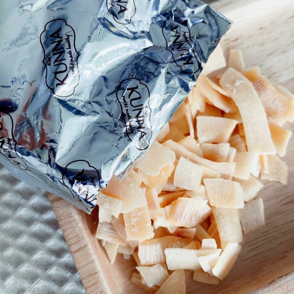 這個是比較大分量的椰子干了,里面有再分成小包裝,一小包剛好夠吃一次,不用擔心吃不完會潮。這個屬于椰奶味比較厚重的那種,還蠻好吃的。