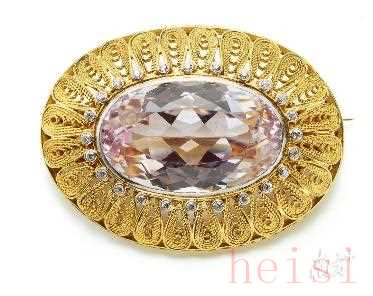 作為蒂芙尼傳奇寶石之一,紫鋰輝石由蒂芙尼第一任首席寶石學(xué)家喬治·弗雷德里克·坤斯博士于1902年發(fā)現(xiàn),為致敬他在寶石學(xué)領(lǐng)域的卓越貢獻(xiàn),這種寶石被命名為紫鋰輝石(Kunzite)。這款出自蒂芙尼藝術(shù)珠寶部門的胸針,以黃金細(xì)絲構(gòu)筑精美框架,將一顆矚目的橢圓形刻面紫鋰輝石置于中央,四周點(diǎn)綴鉆石,盡顯工藝之美。
